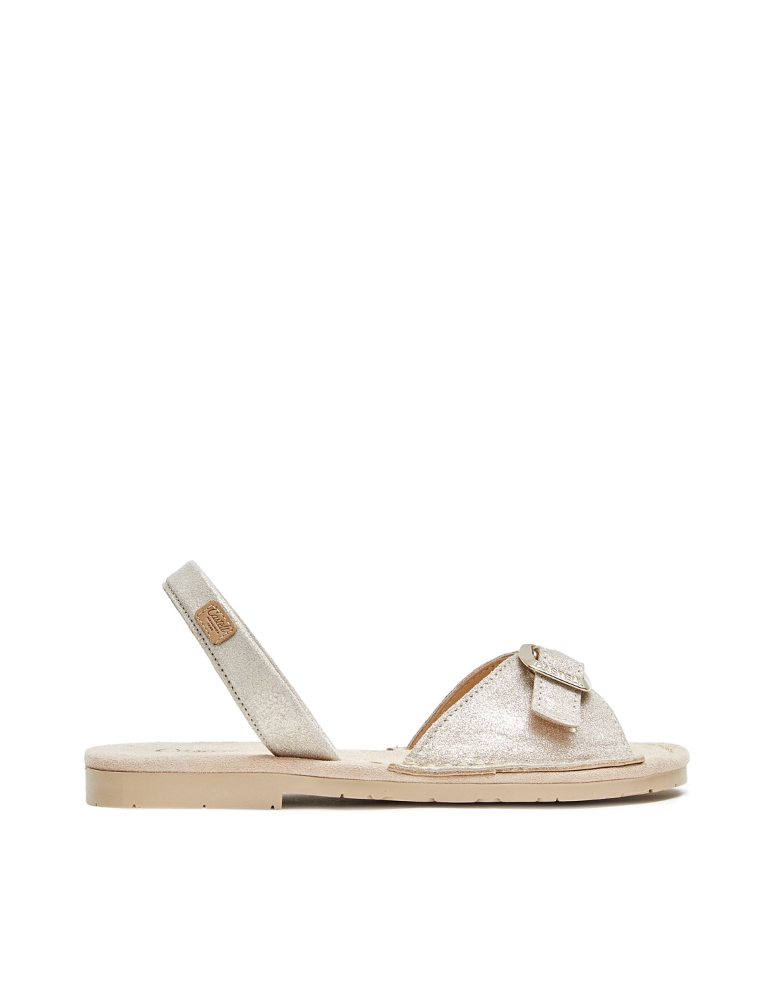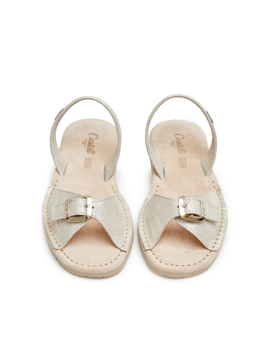 Abarca daurada amb sivella i plantilla encoixinada, còmoda i elegant.