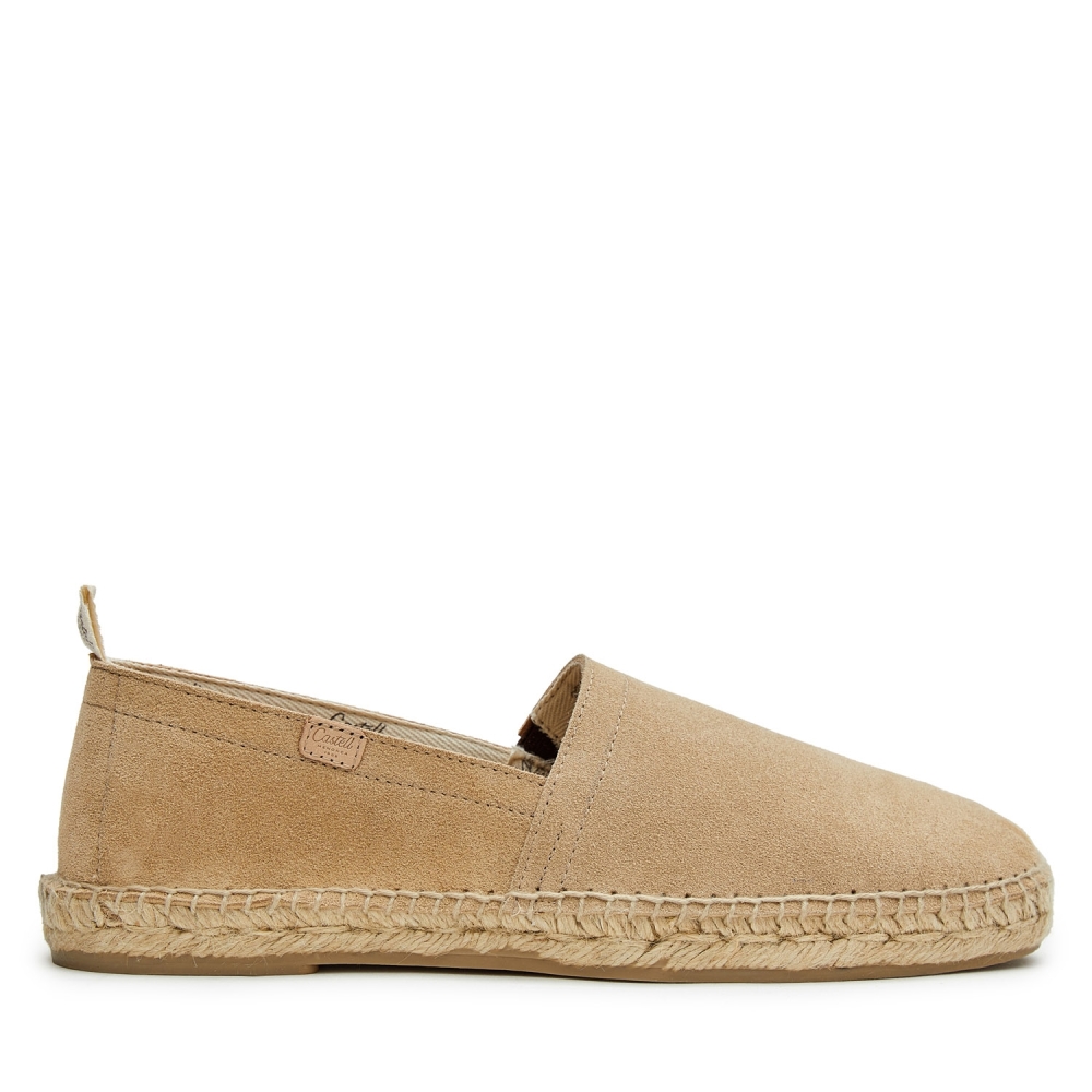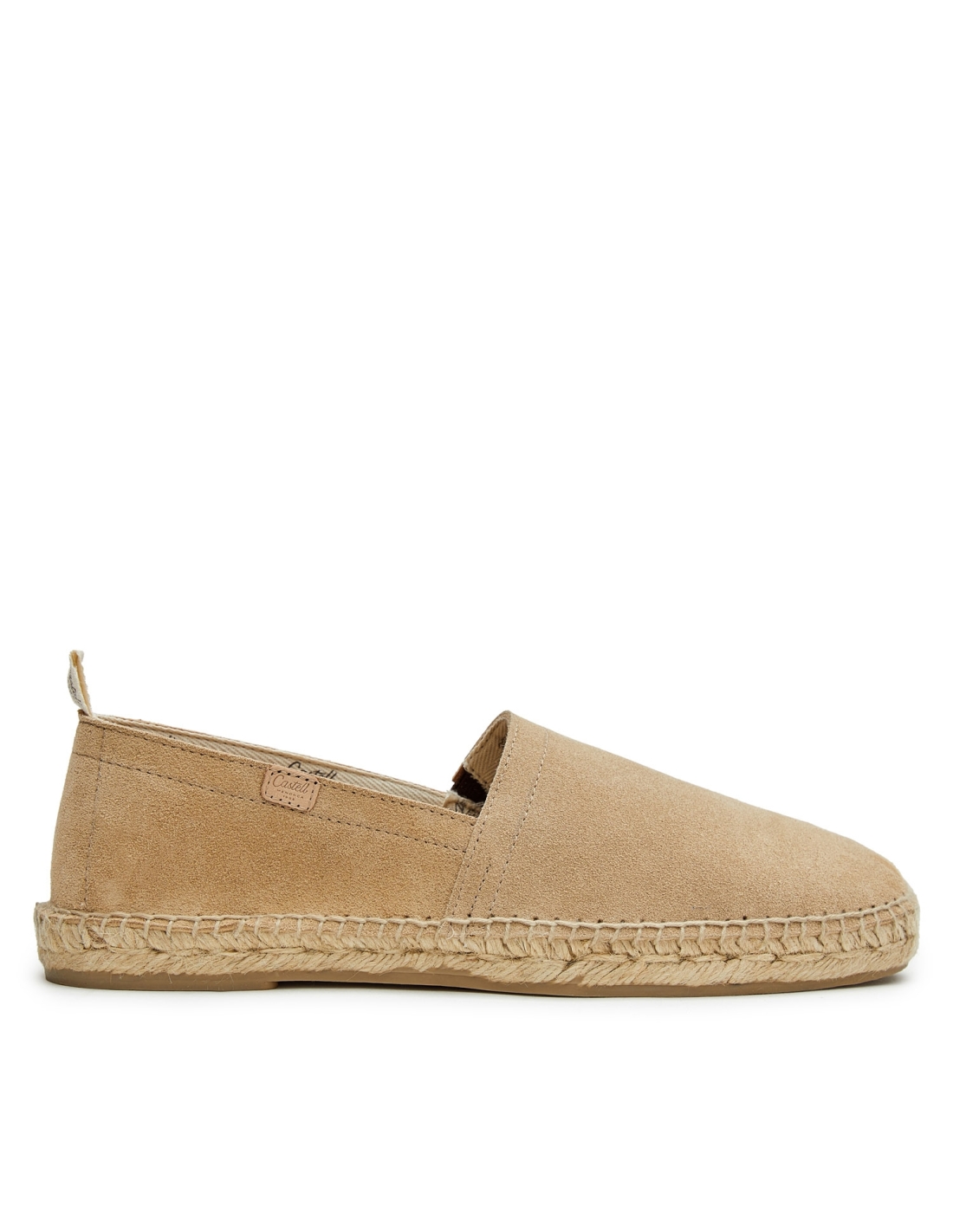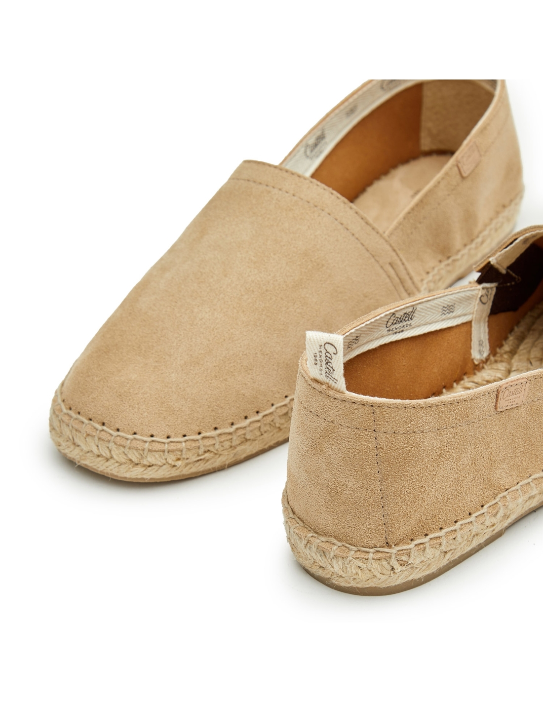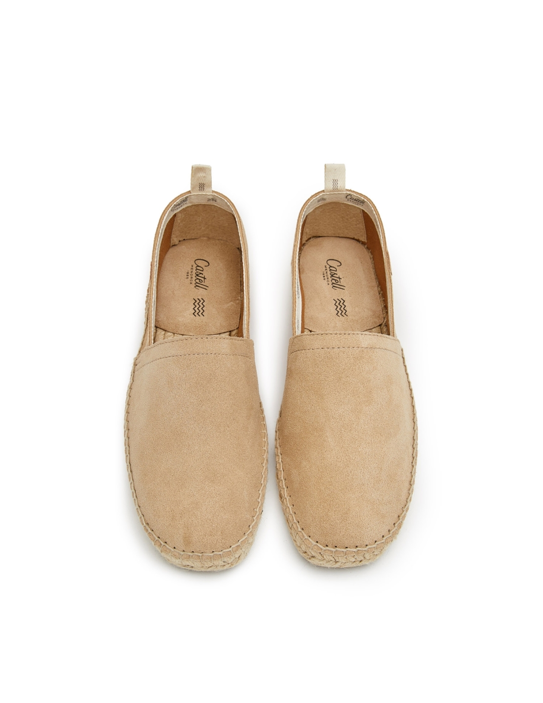 Espardenya de serratge amb sola de jute i cautxú. Fabricació elaborada amb serratge italià de primera qualitat, folrada amb pell i acabat interior amb cinta de cotó amb el logo de Castell. Plantilla embuatada de serratge.