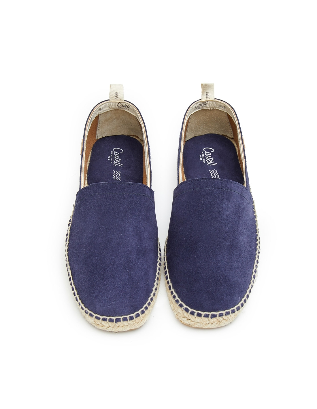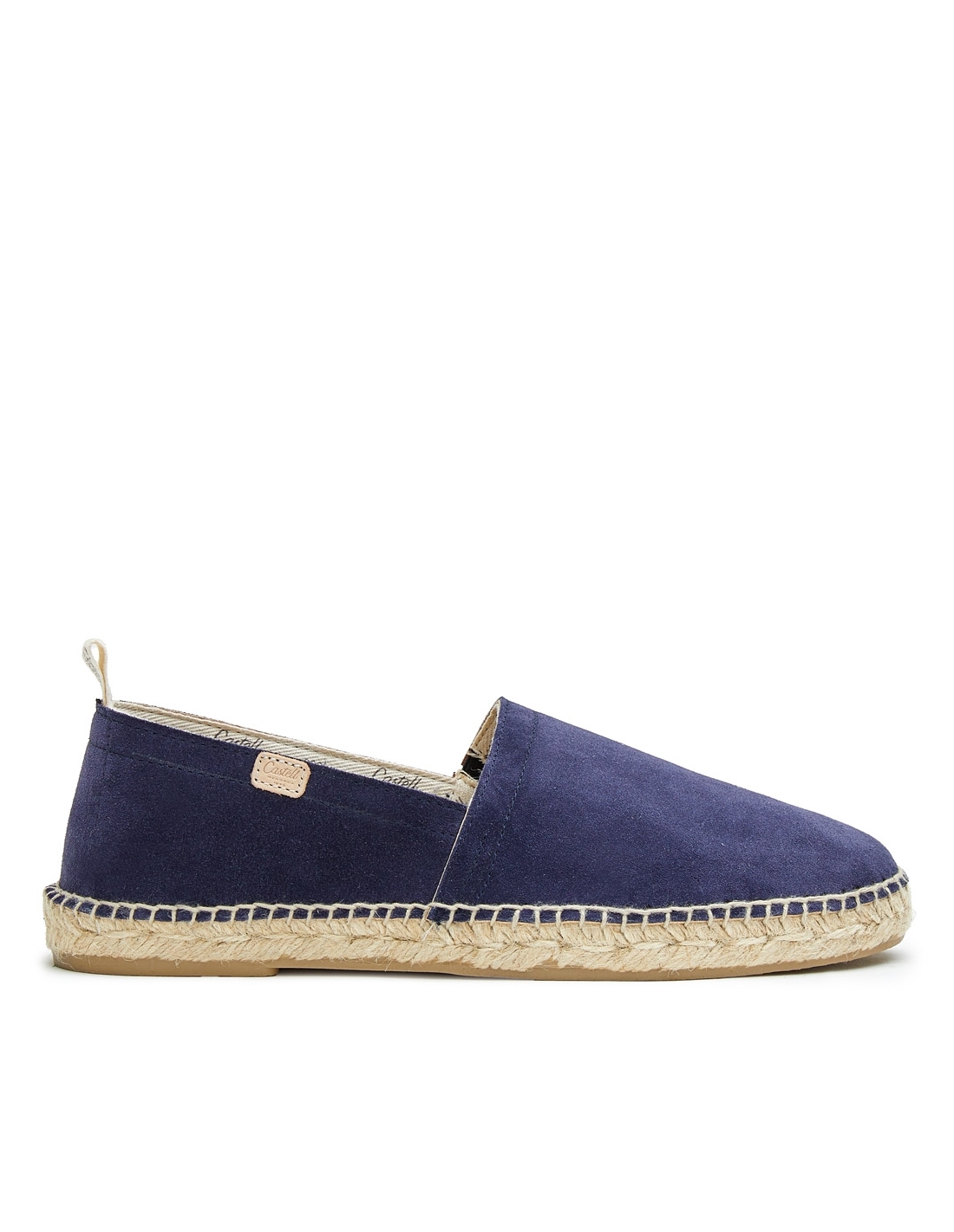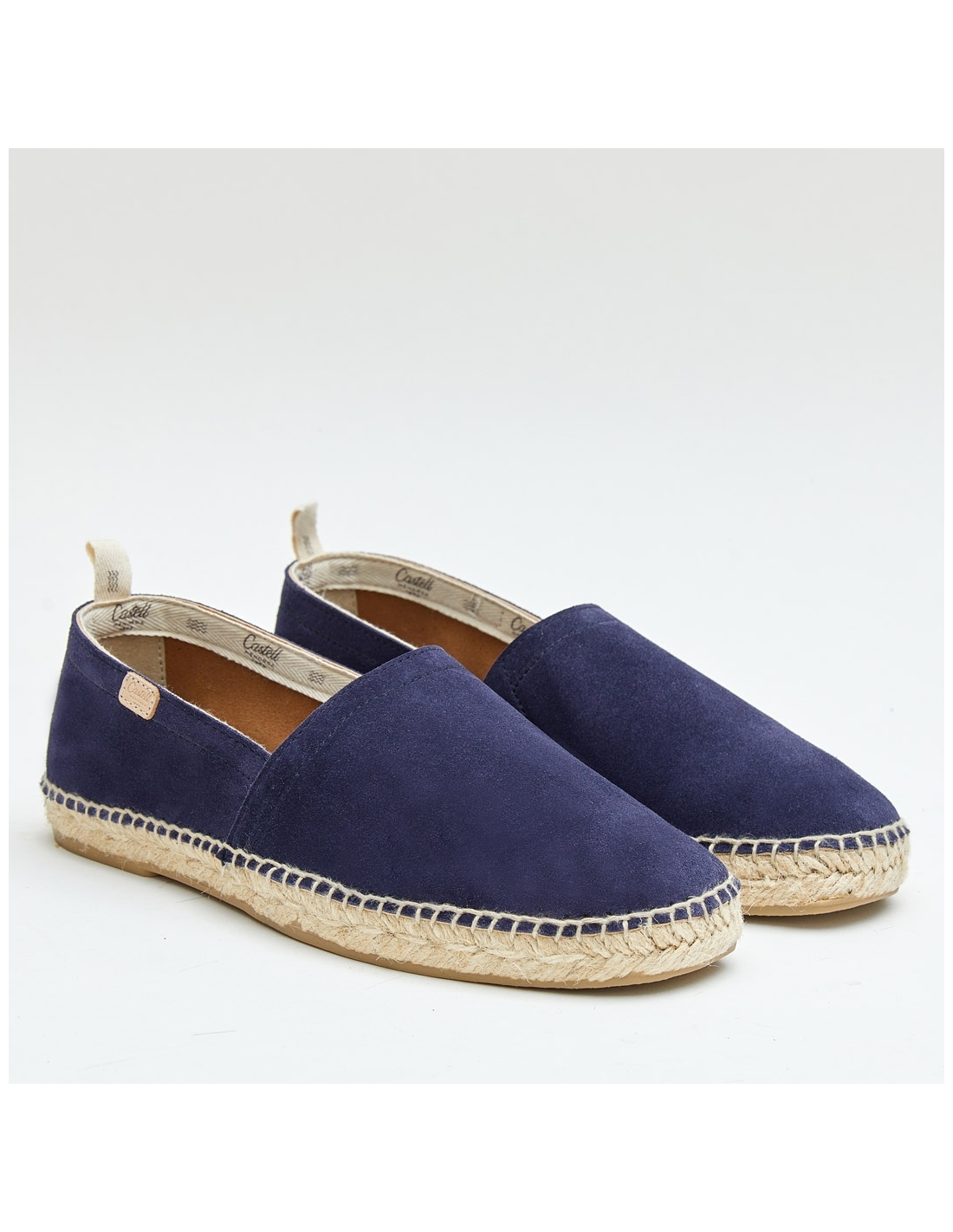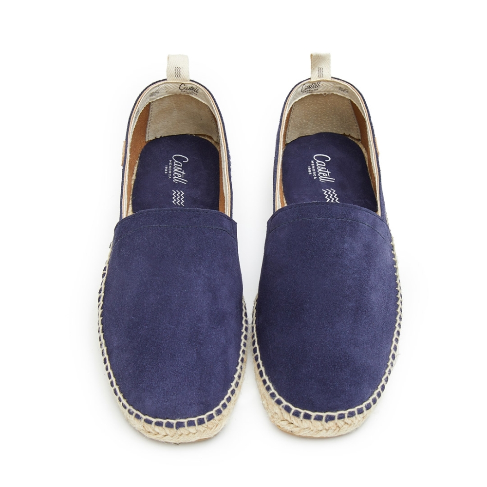 Espardenya de serratge amb sola de jute i cautxú. Fabricació elaborada amb serratge italià de primera qualitat, folrada amb pell i acabat interior amb cinta de cotó amb el logo de Castell. Plantilla embuatada de serratge.