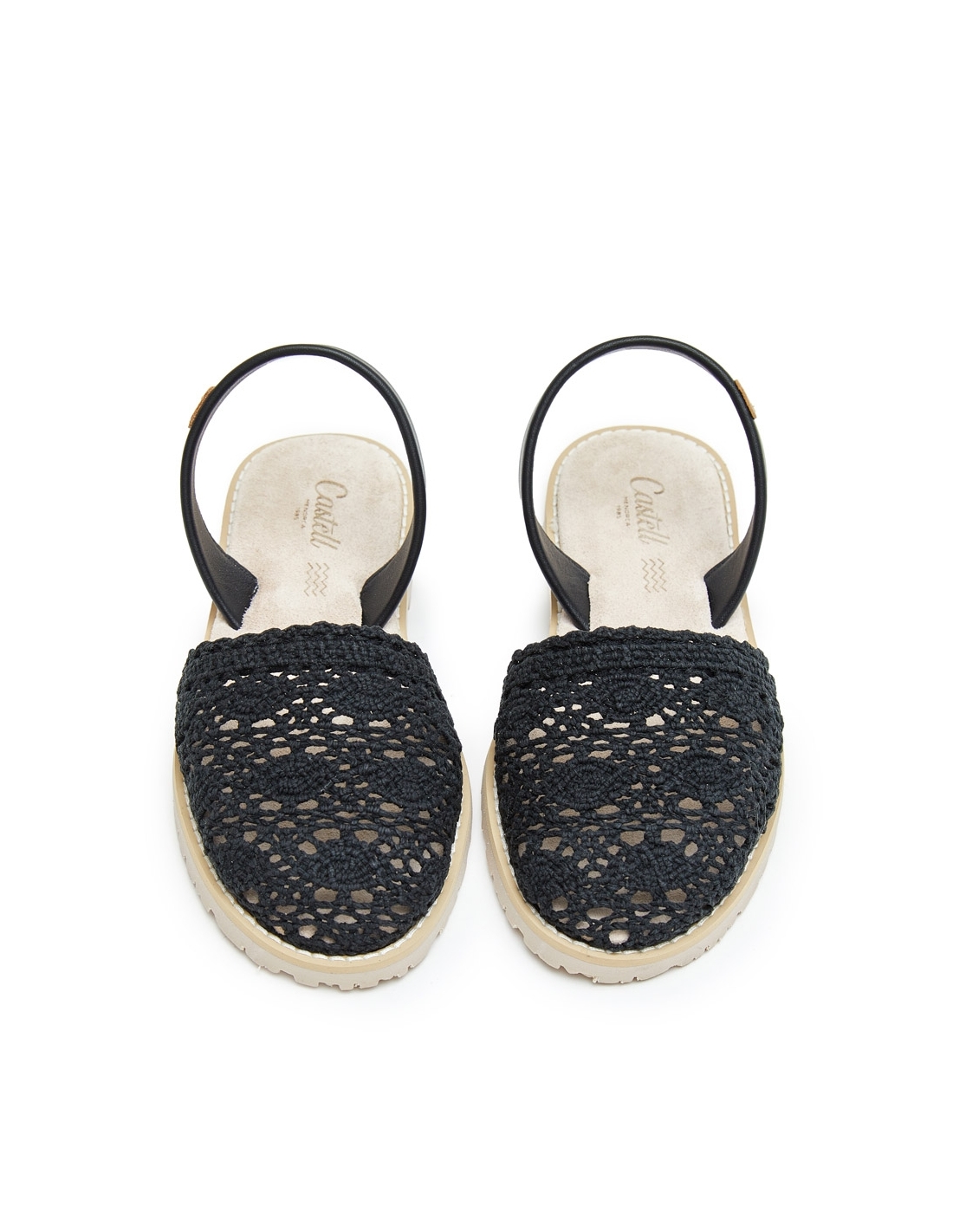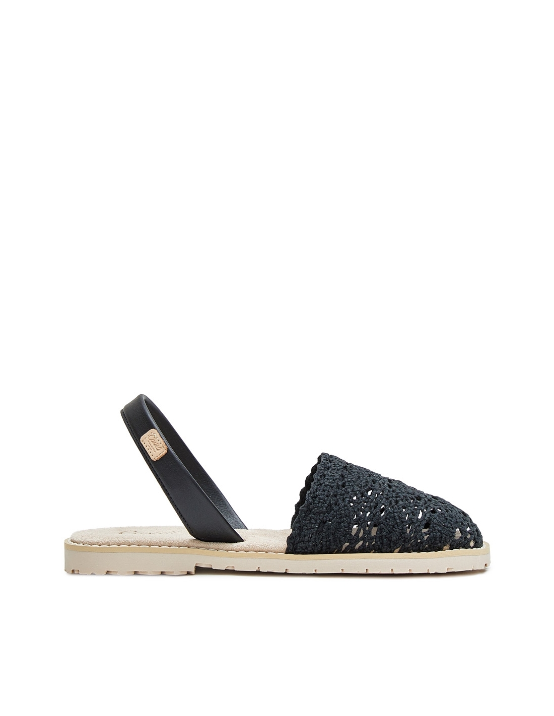 Avarca artesanal Madona amb pala de ganxet i palmilla encoixinada.