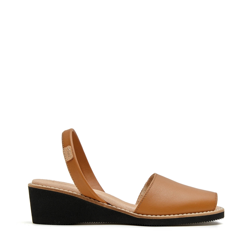 Avarca Menorquina de pell amb tascó negre. Plantilla embuatada. Pala amb elàstic interior per a major comoditat.