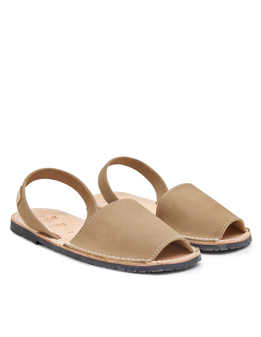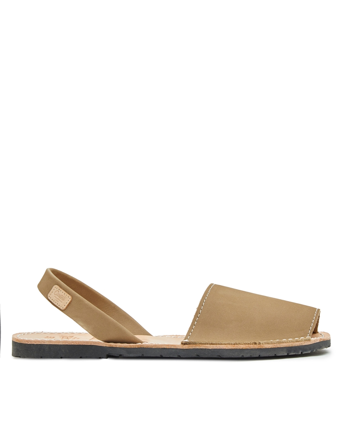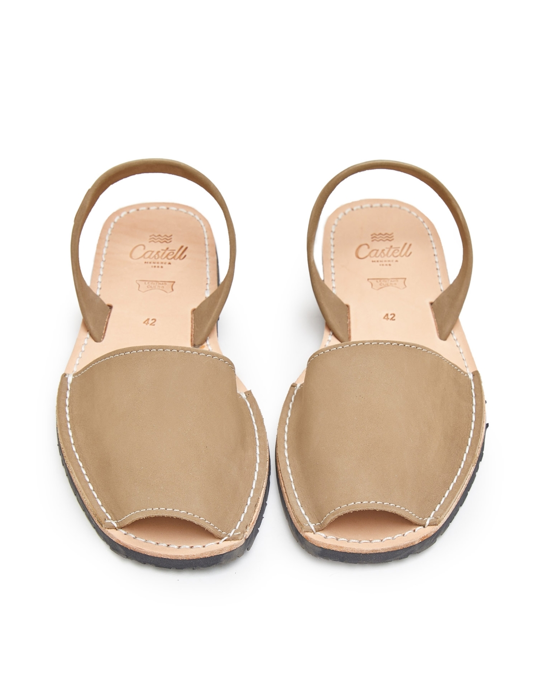 Classic sandals with leather insole. Manufactured with cowhide leather. Upper stitched to the insole. Black rubber sole with raised heel. Height 1,5 cm.