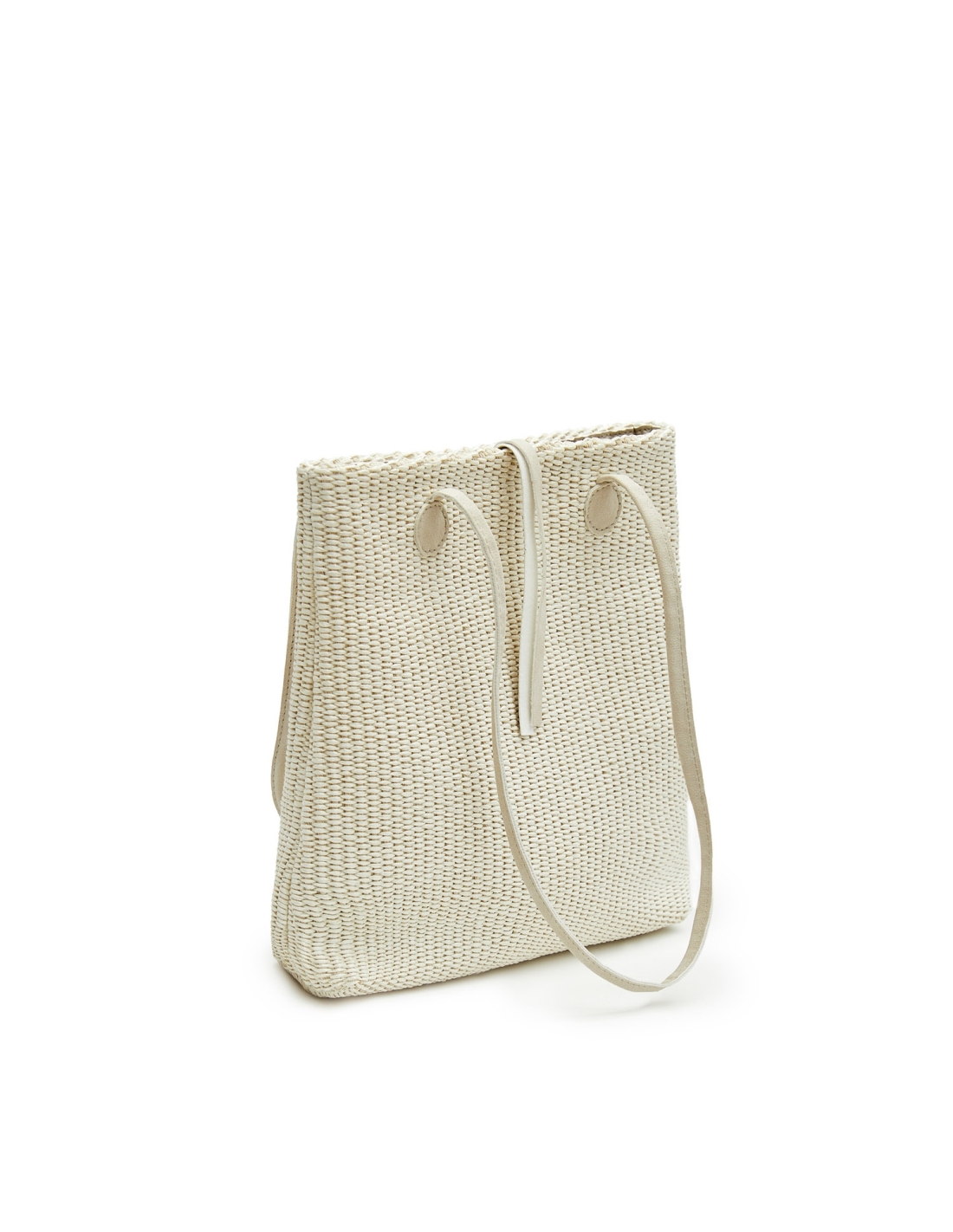 Light and breezy, the white raffia bag is made for sunny days and relaxed summer looks. With a magnetic closure, inner pocket, and shoulder strap, it’s a practical yet elegant piece that celebrates simplicity and artisan detail.