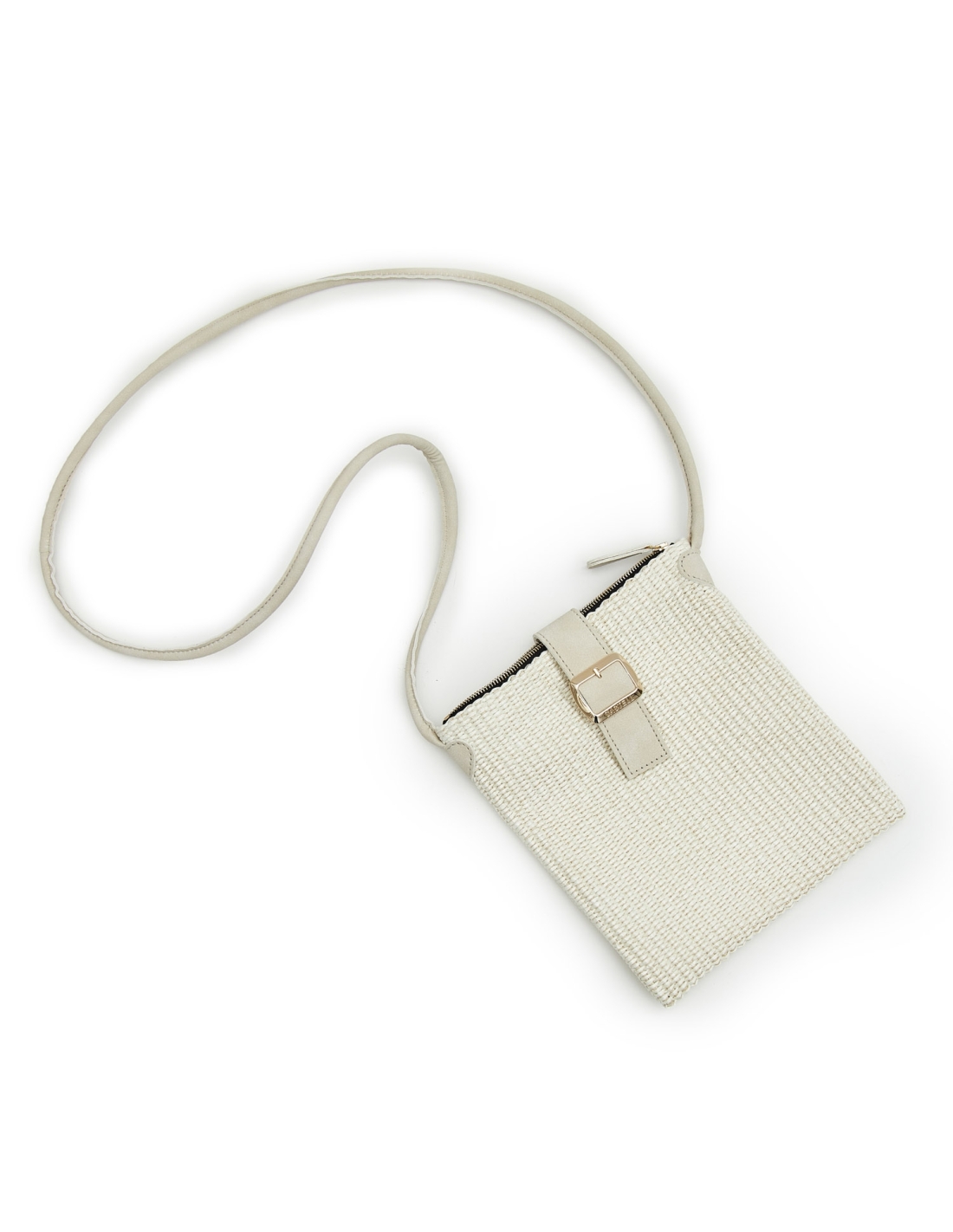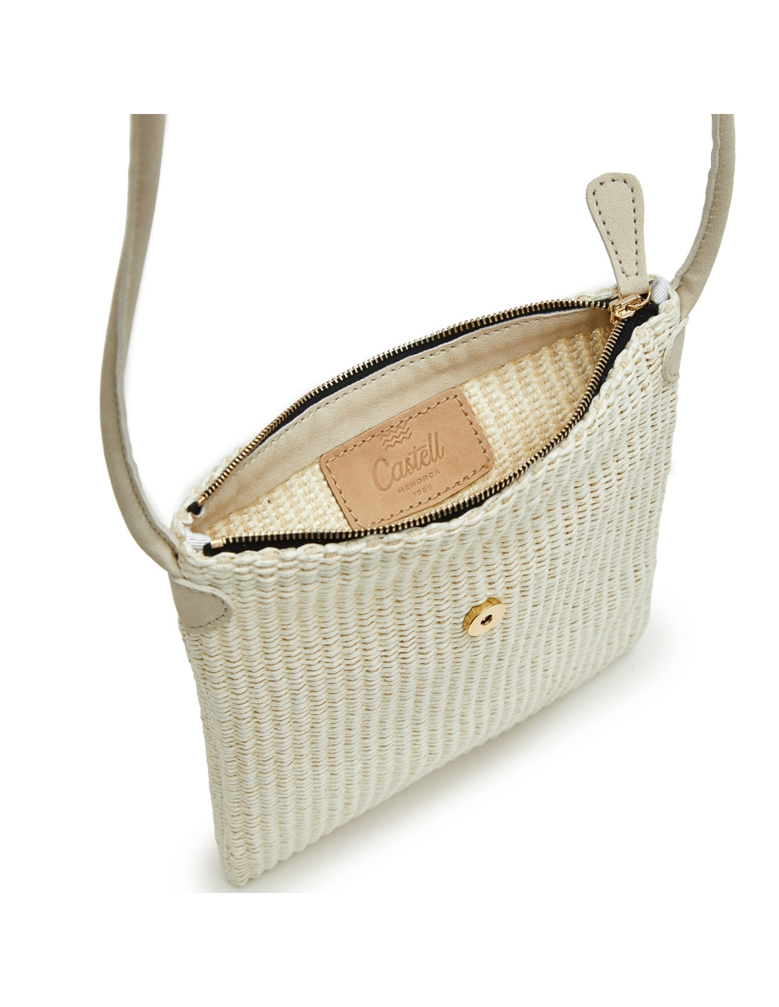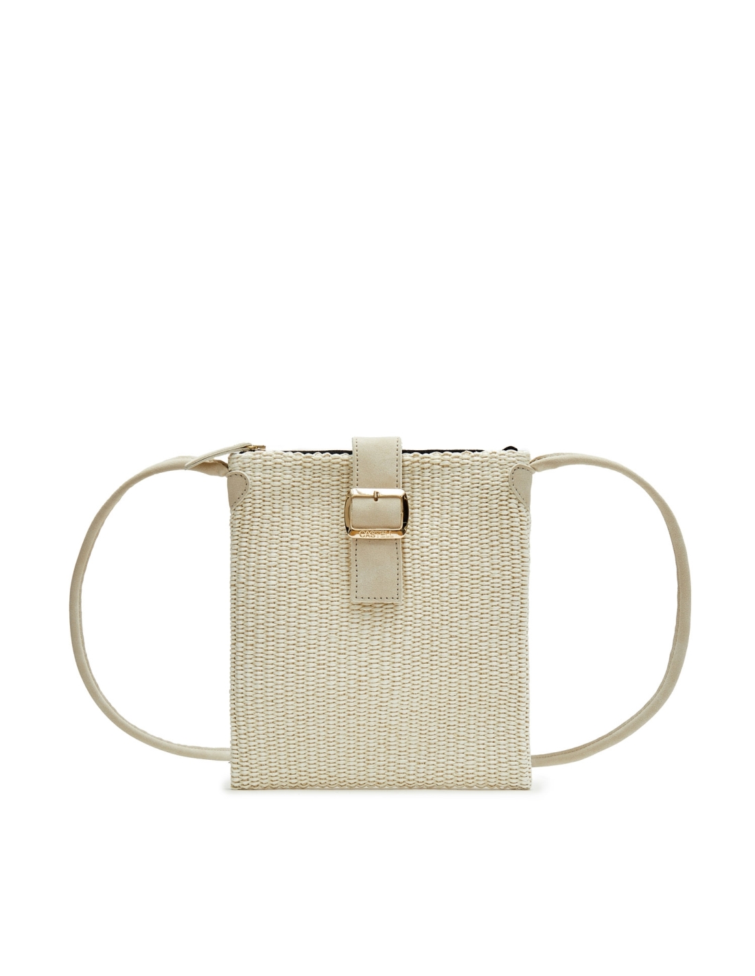 White raffia crossbody bag light, handmade and effortlessly chic.
