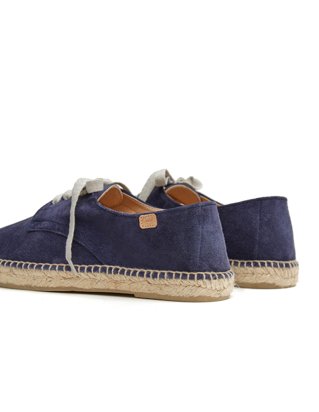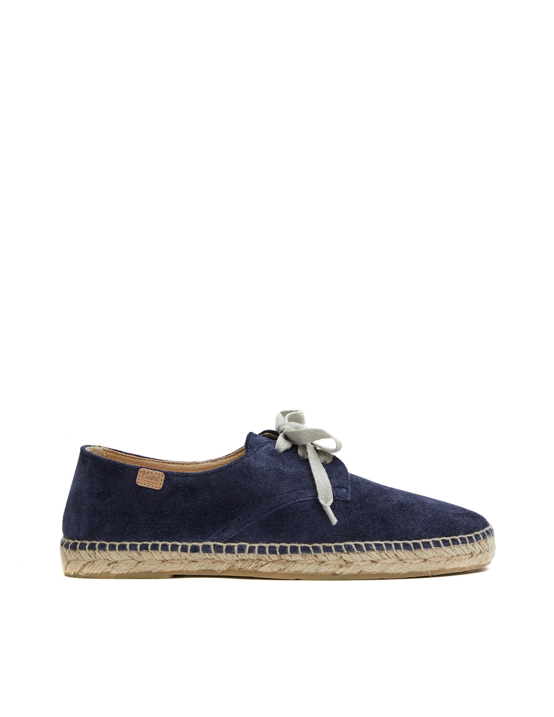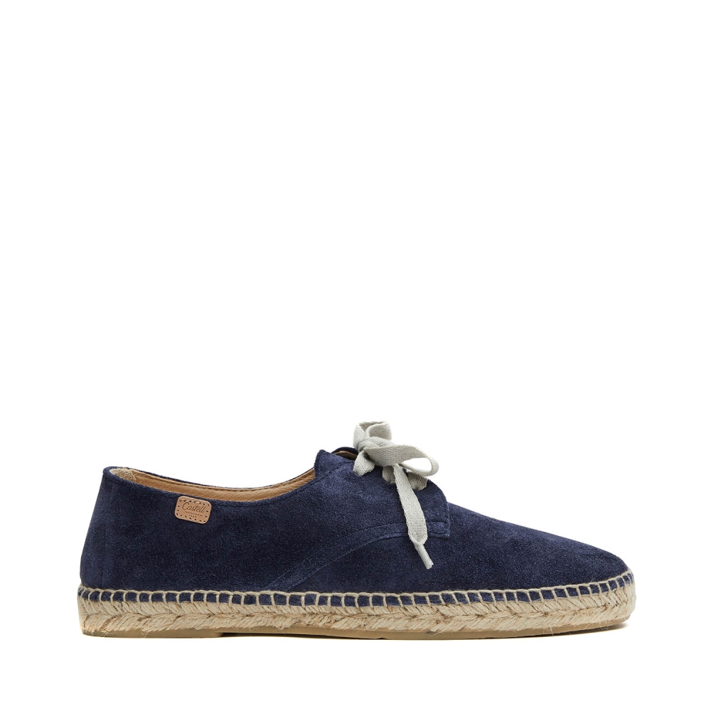 Men's split leather espadrilles with jute and rubber sole. Made with first quality Italian split leather, lined with leather and finished with laces on the upper. Padded split leather insole.