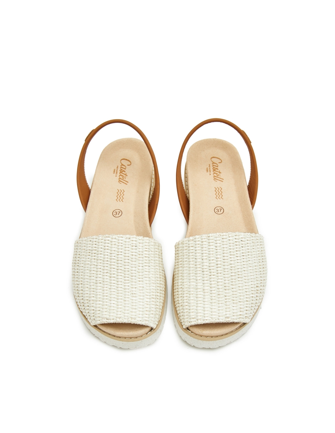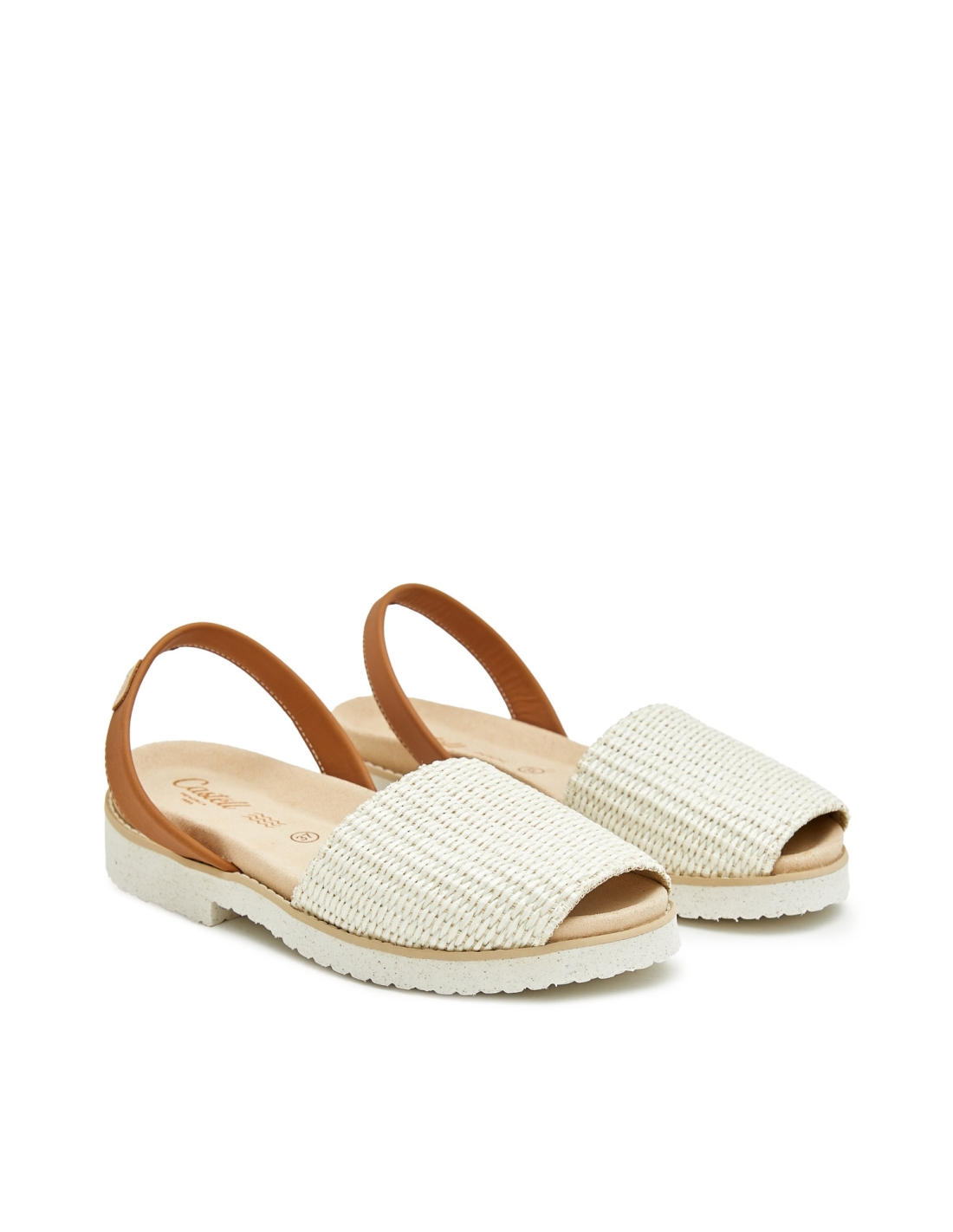 Menorquina made of raffia and leather lined upper, with anatomic lined insole and a light white rubber sole.