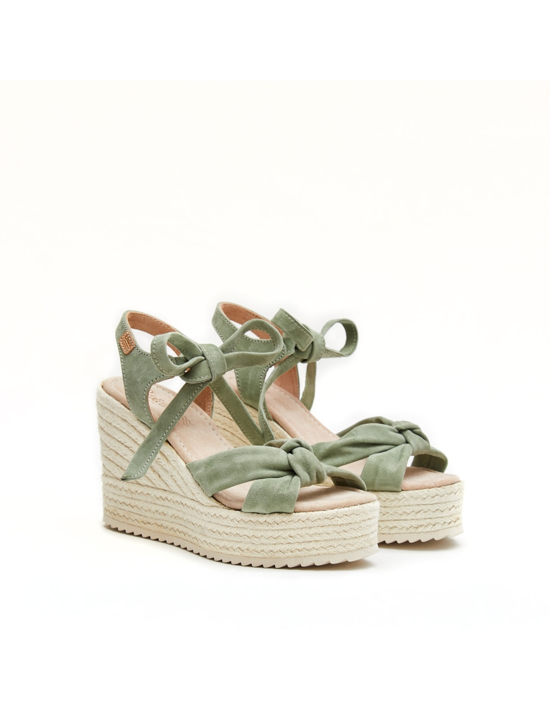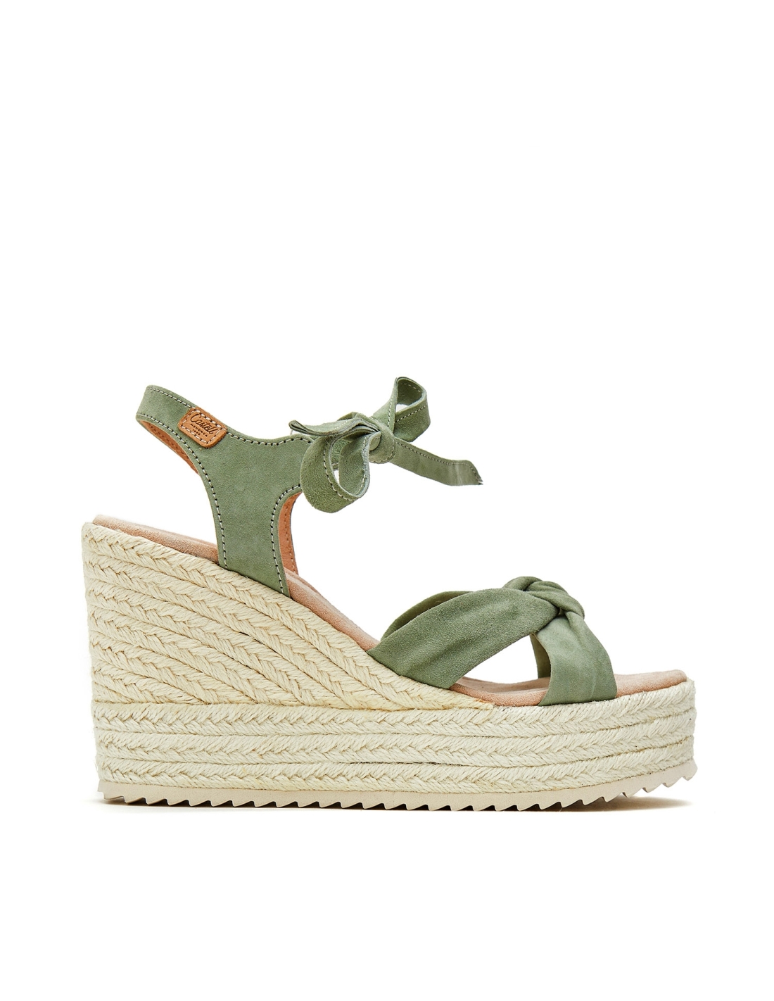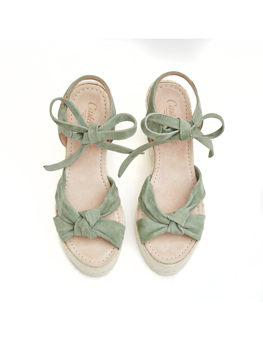 Sandal made of high quality suede. Upper with tubular knot. Insole padded insole. Closing with tubular loop at the ankle. Total height 10 cm, platform 3.5 cm and wedge 6.5 cm. The retro structure is the highest that Castell manufactures, thanks to its platform and padded insole, it is a very comfortable model. padded insole, it is a very comfortable and elegant model.