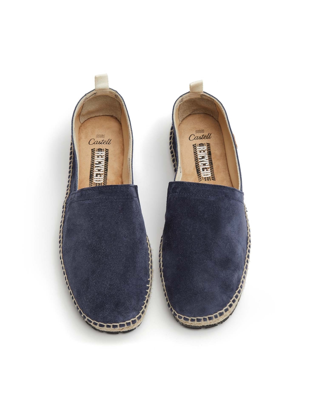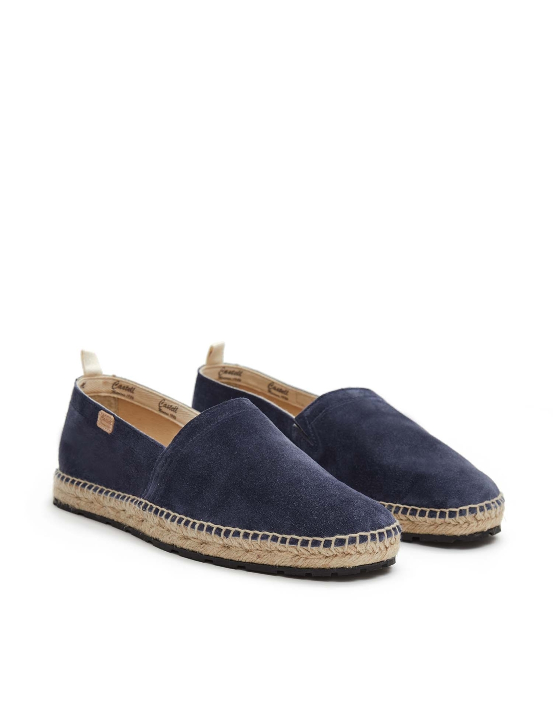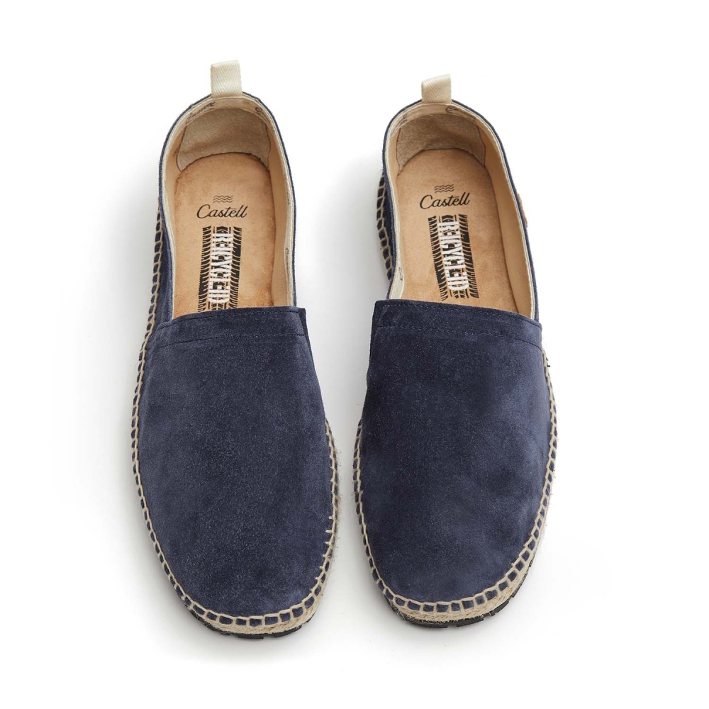 Espadrille Recycled Man with jute and recycled tire. Manufactured with Italian split leather, lined with leather and finished inside with cotton ribbon with the Castell logo. Padded split leather insole. Recycled tire sole.