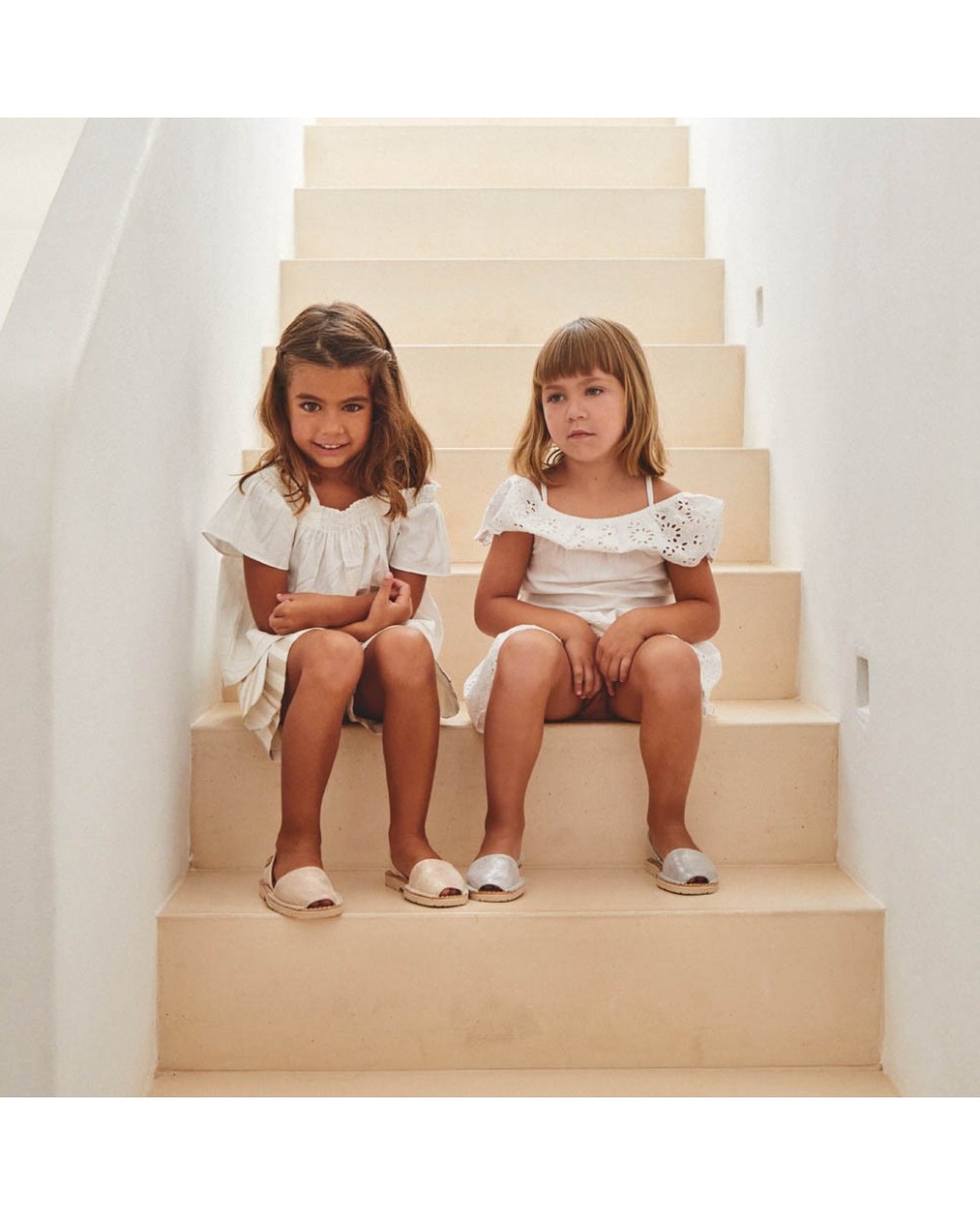 The Menorcan avarcas for girls by Castell will become the must-have in their wardrobe. Menorquinas made from very resistant leather with designs as diverse as they are, sporty, stylish, feisty.....they will all find their own style! Discover our Menorquinas with anatomic insoles ,soft, comfortable and perfect for the growth of their little feet.
