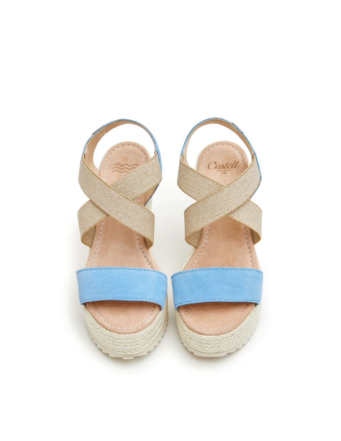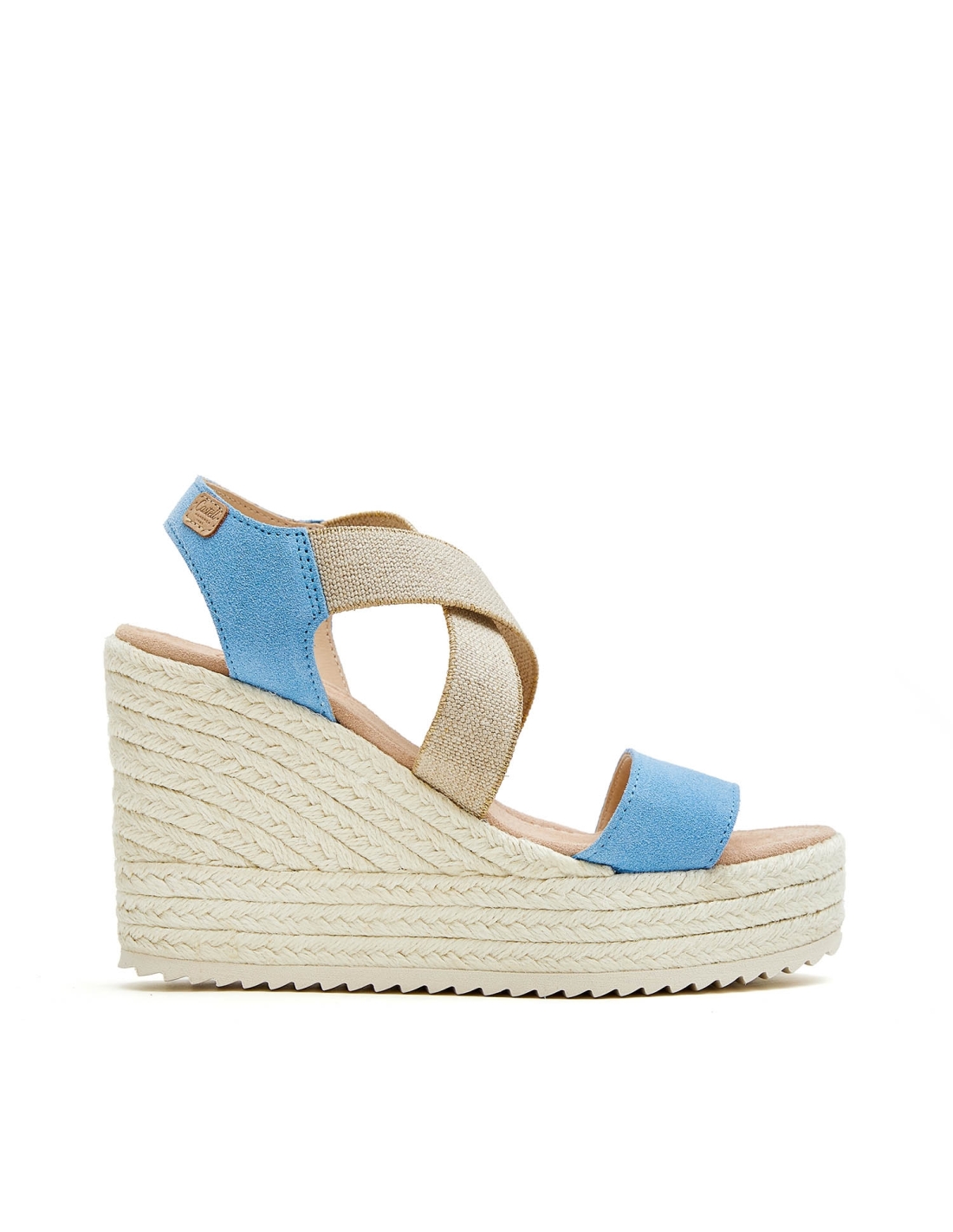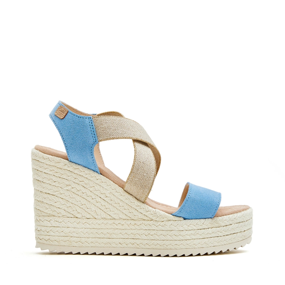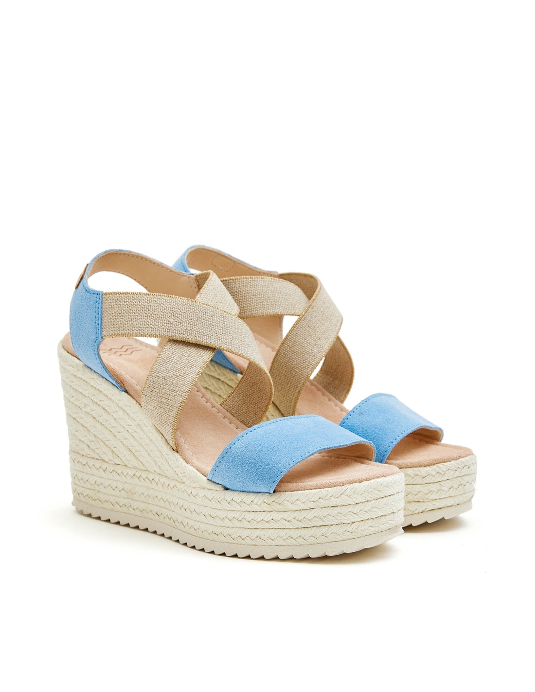 Jute sandal with crossed elastic. Model made of top quality italian split leather. lined. Adaptable model thanks to its crossed elastic. Padded insole. Total height of 9 cm, platform of 3 cm and wedge of 6 cm.