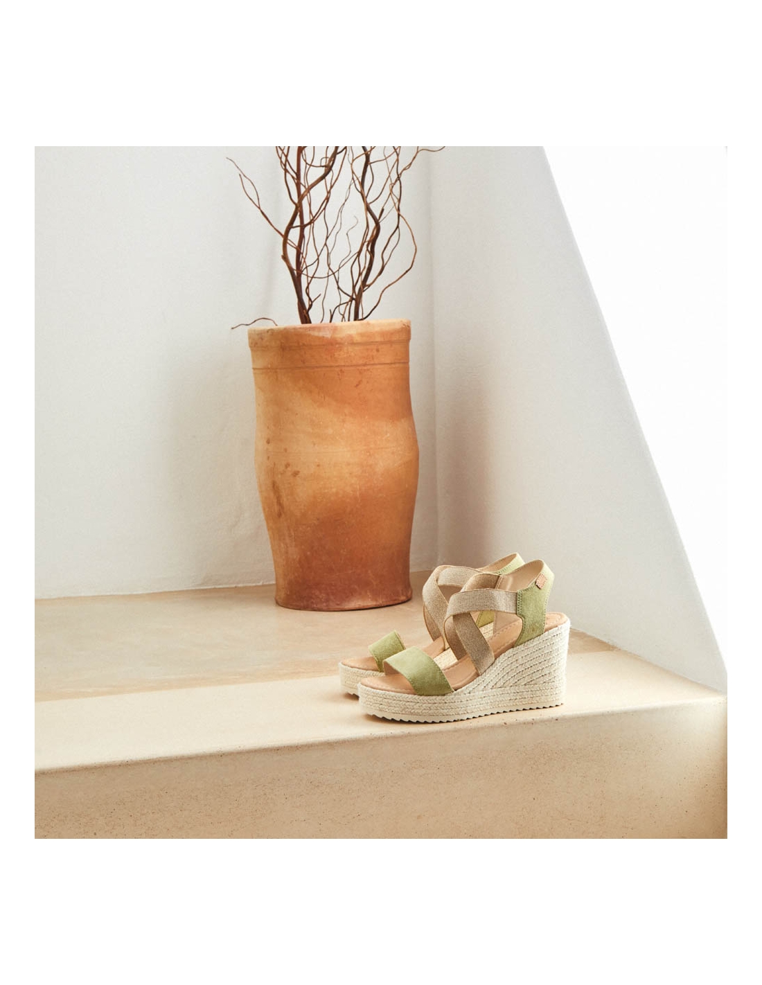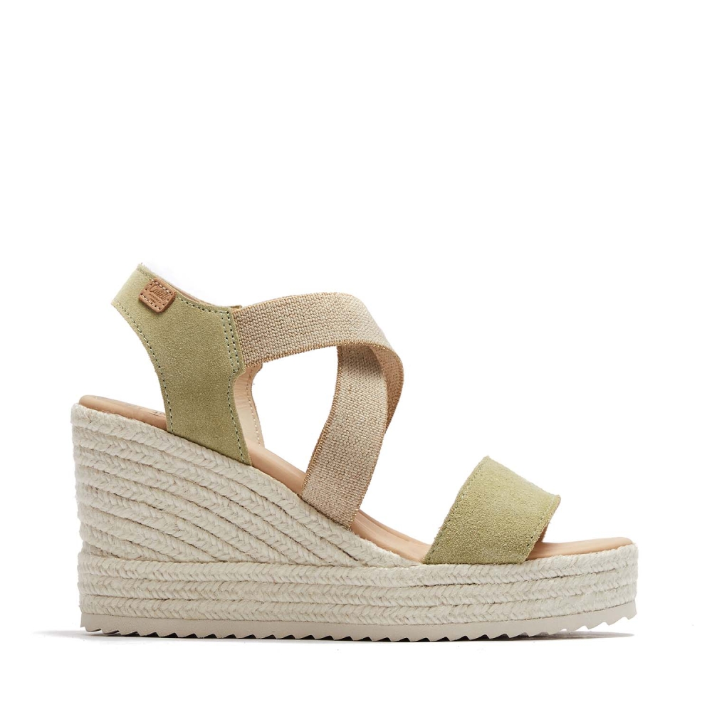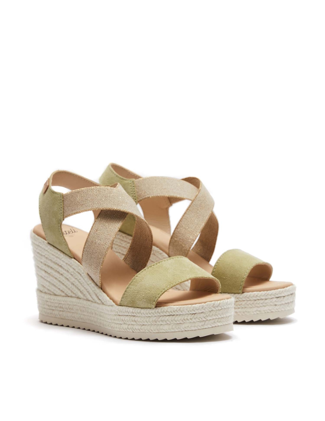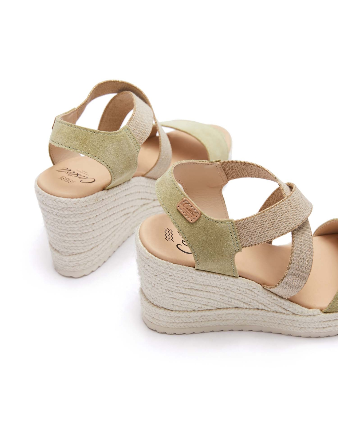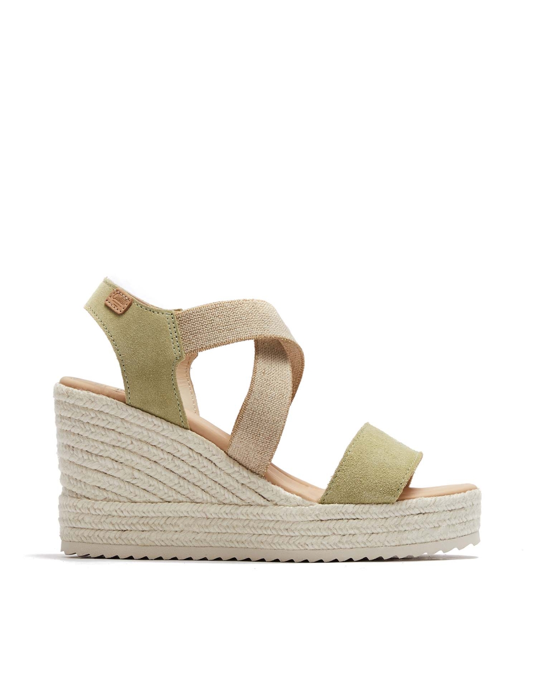 Jute sandal 9 cm high. Model made of 1st quality Italian split leather, adapts very well to the foot thanks to its beige cross elastic. The stitching of the vamp and the back strap is of the same color as the leather, this model is lined with leather and has a padded insole. It has a total height of 9 cm, the platform measures 3 cm and the wedge measures 6 cm. The retro structure is the highest that Castell manufactures, thanks to its platform and padded insole, it is a very comfortable and elegant