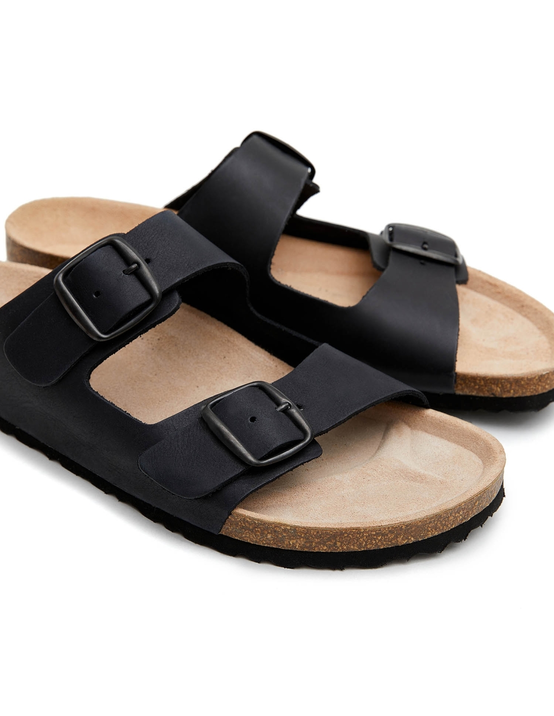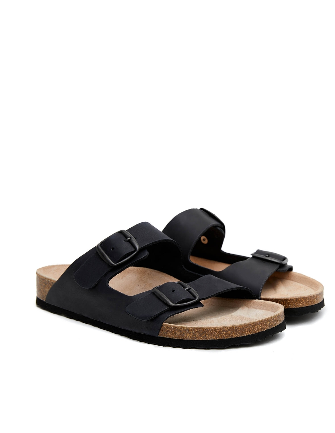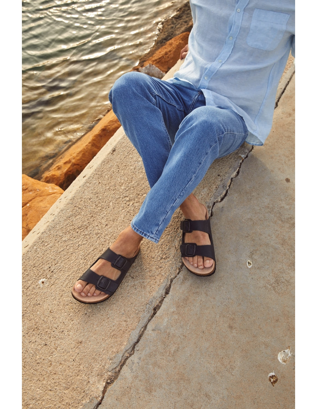Men's sandal with two adjustable buckles. Made with leather. Anatomical sole with black sole.