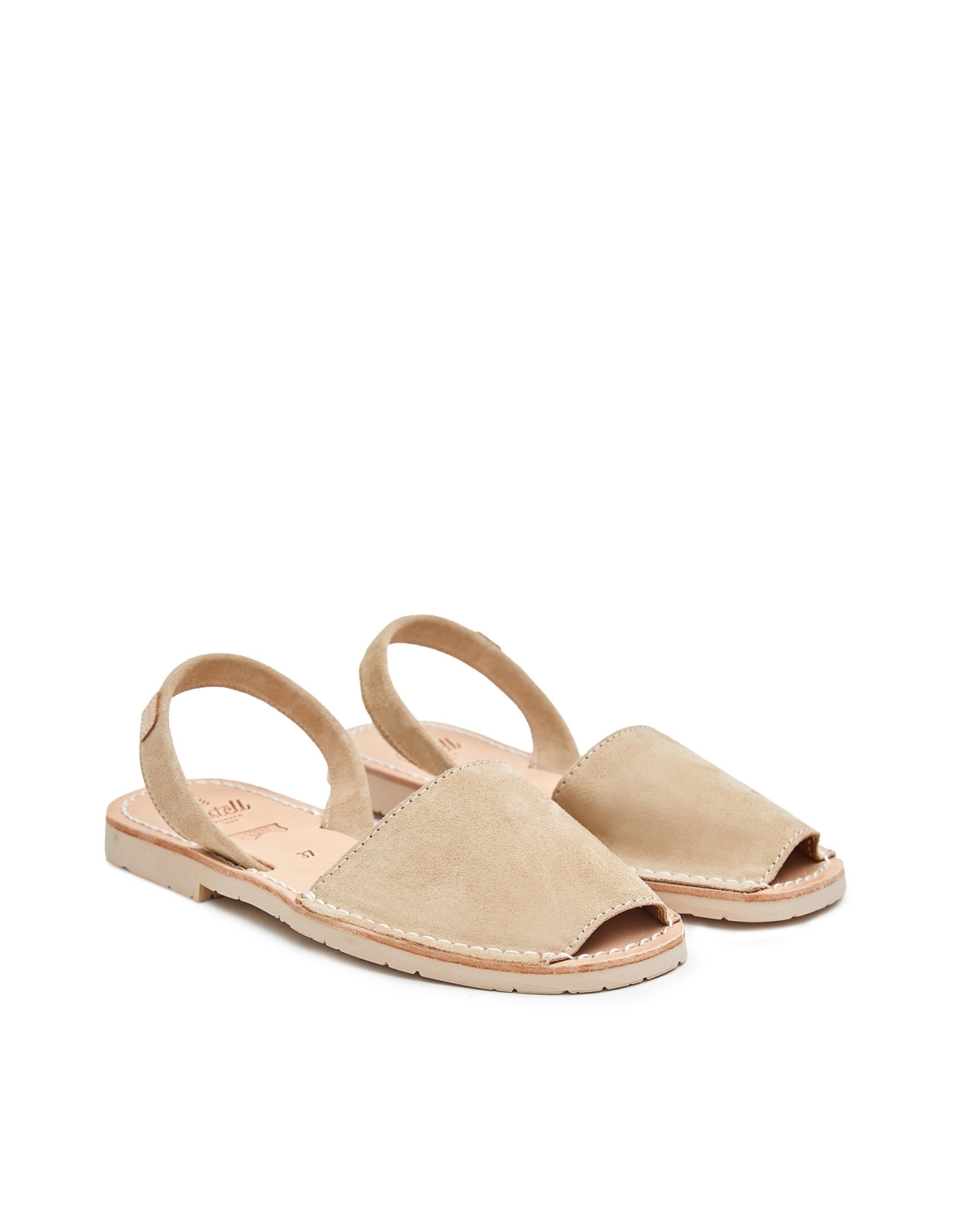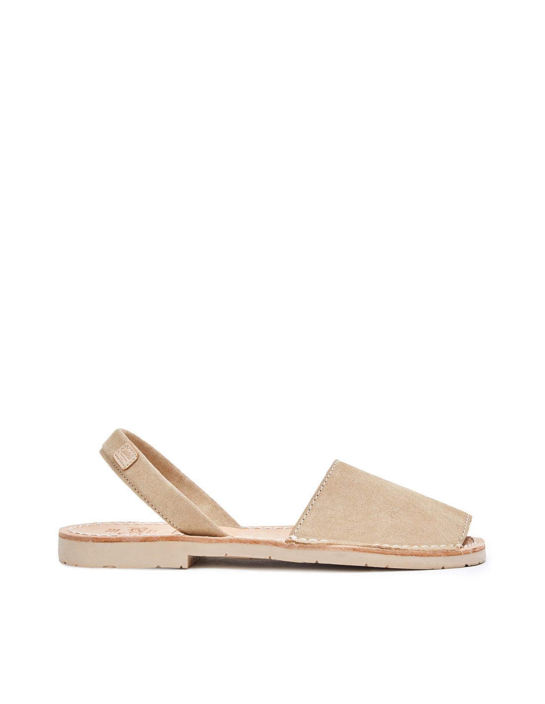 Abarca made of first quality Italian split leather. Leather lined upper stitched on the insole. Height of 1.5 cm.