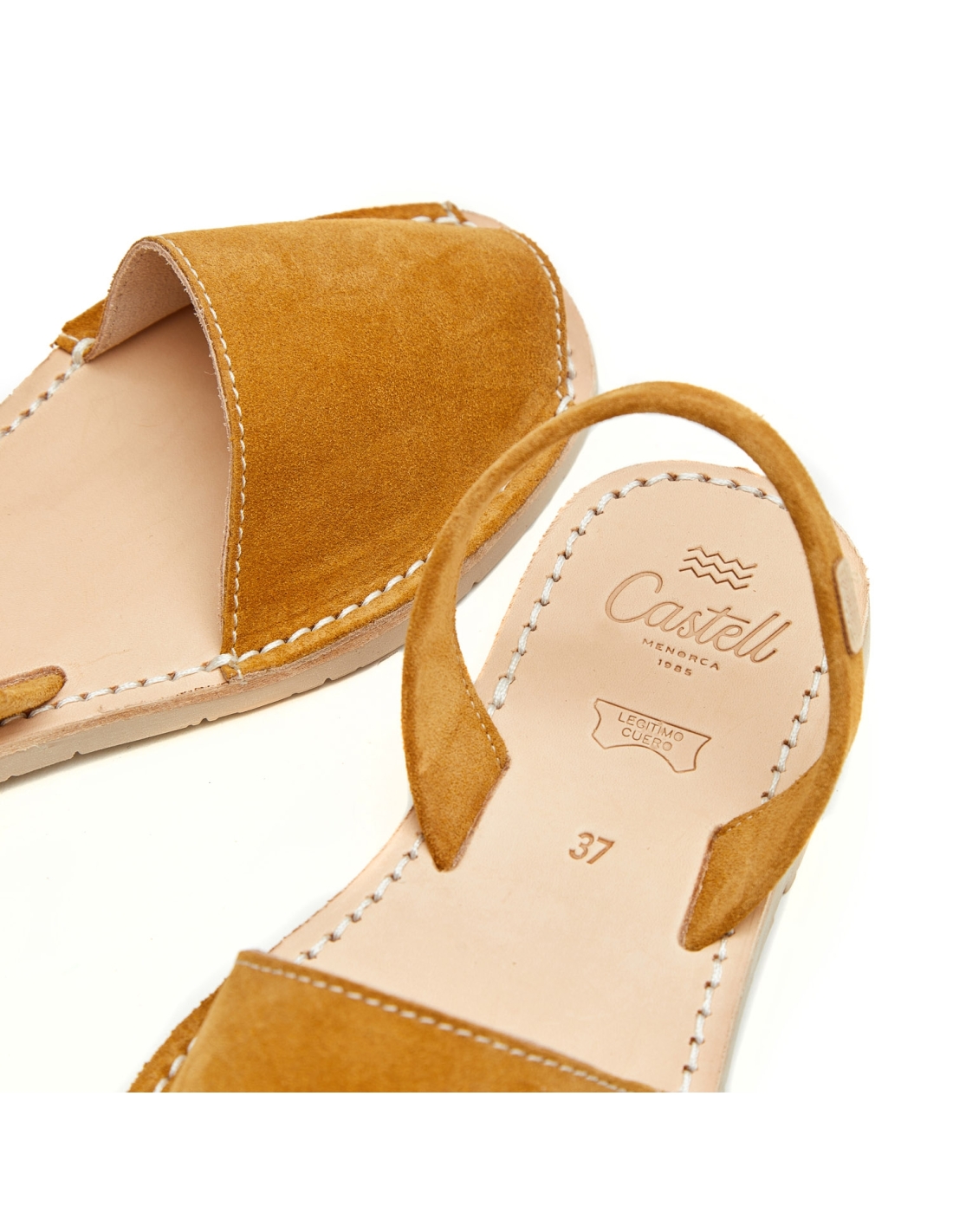 Abarca made of first quality Italian split leather. Leather lined upper stitched on the insole. Height of 1.5 cm.