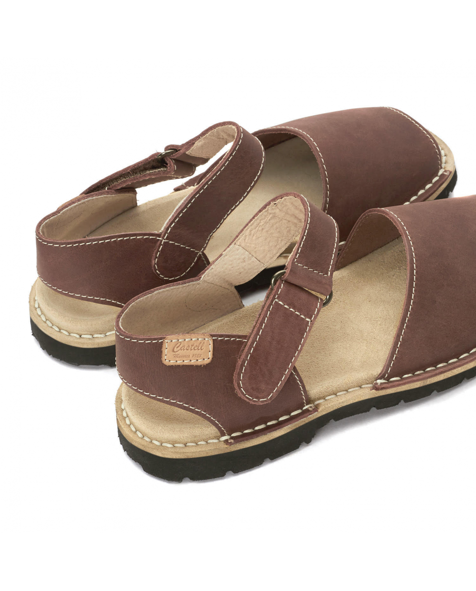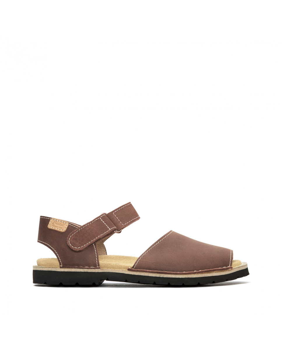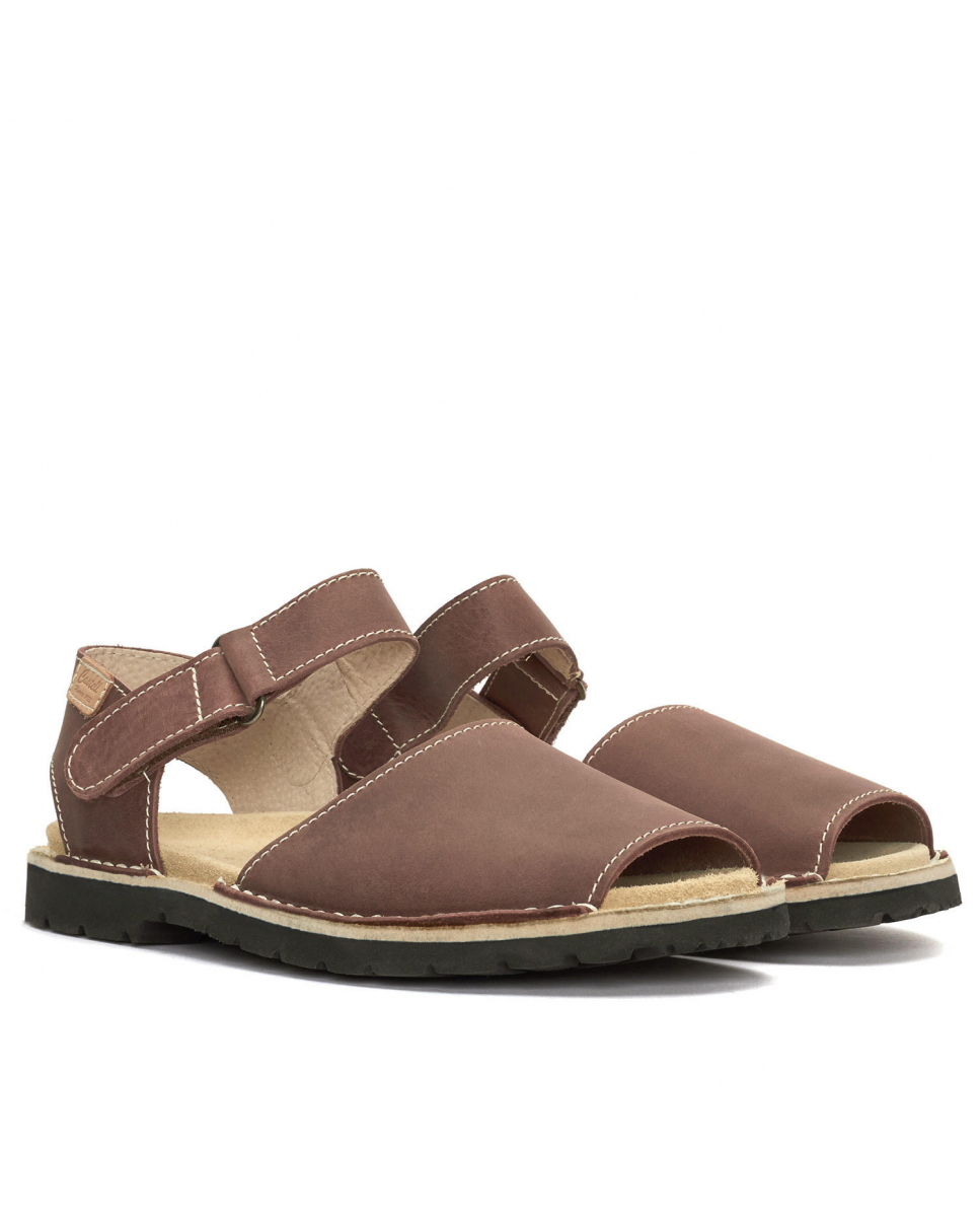 Abarca frailera unisex rustic leather with anatomical insole. Bare heel with adjustable velcro strap. Ideal model for normal and wide feet.