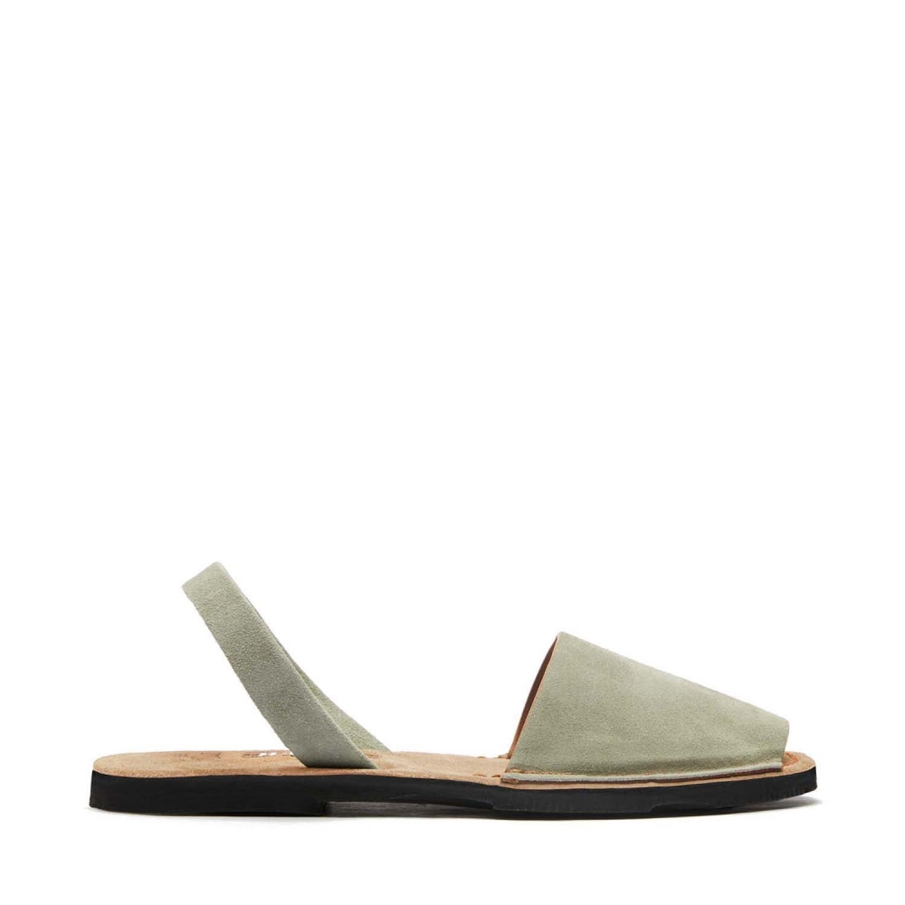 Abarca Women's Menorquina recycled. Recycled collection. Made with first quality Italian split leather in different colors. Leather lined upper. Leather strap on the edge. Padded split leather insole. Recycled tire rubber sole.