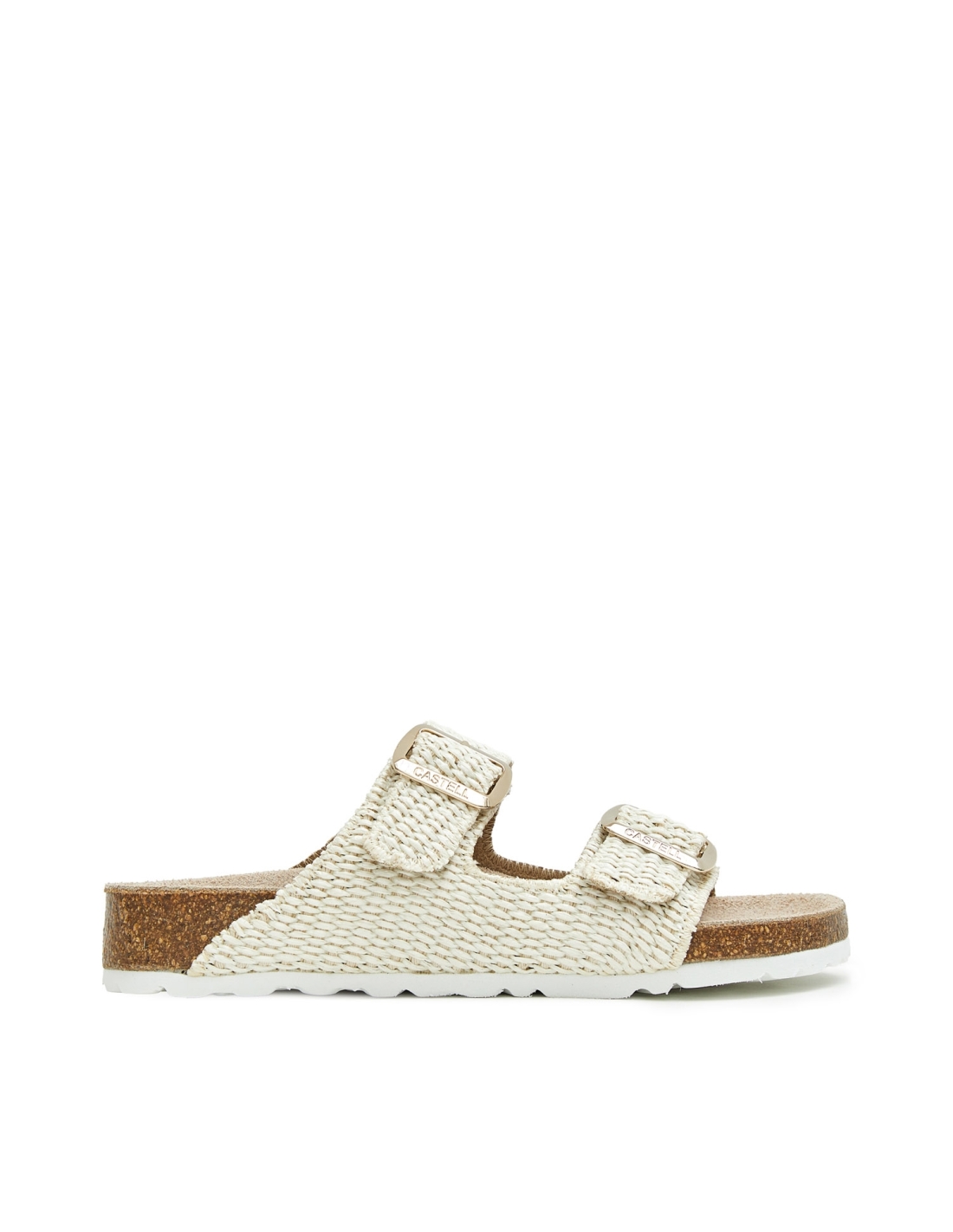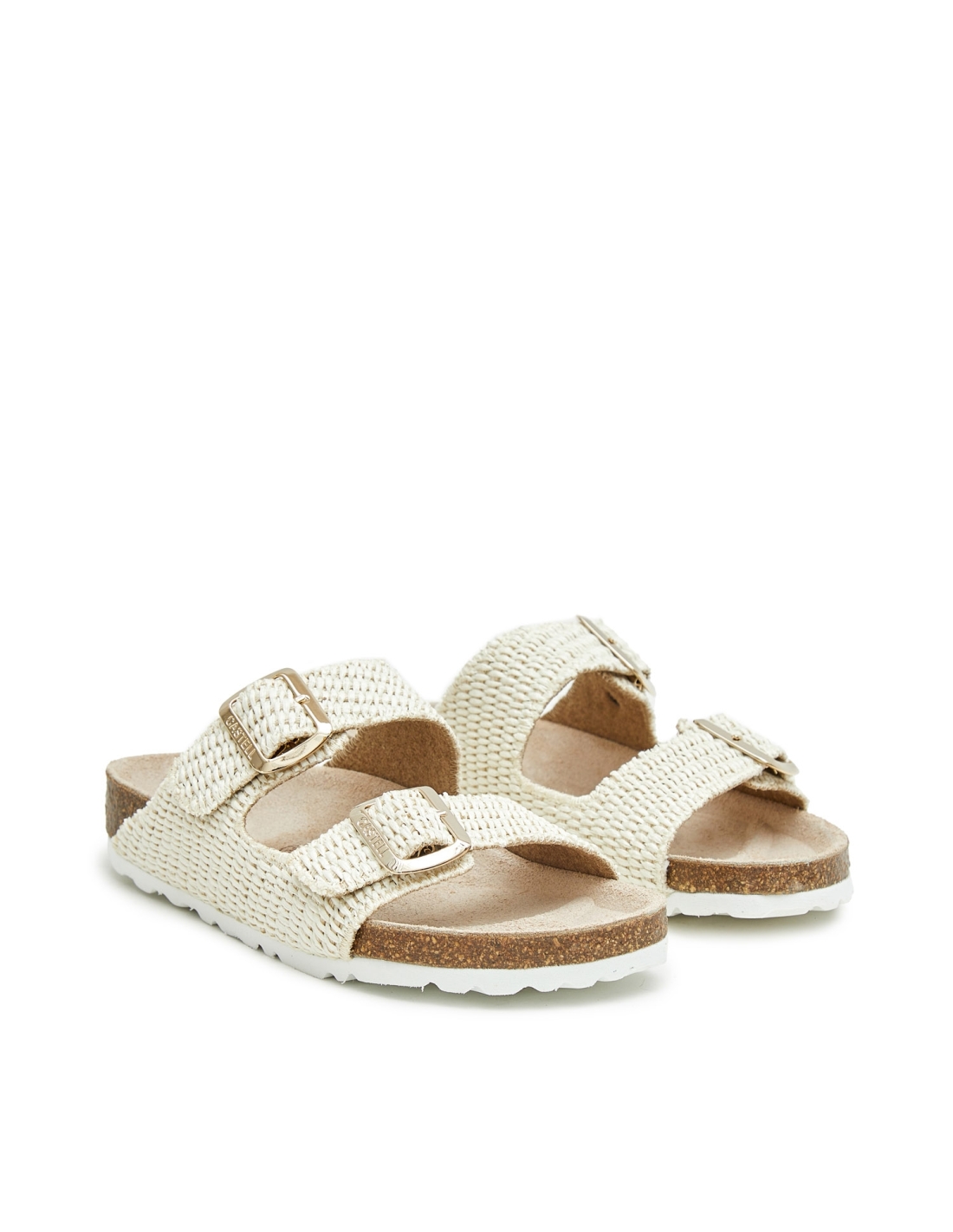 This raffia sandal with anatomical footbed blends comfort and natural charm for everyday wear. Featuring two adjustable buckle straps, it ensures a secure fit while keeping a light, breezy feel. The raffia texture and handcrafted finish give it a fresh Mediterranean vibe. A versatile piece for relaxed, effortless style.