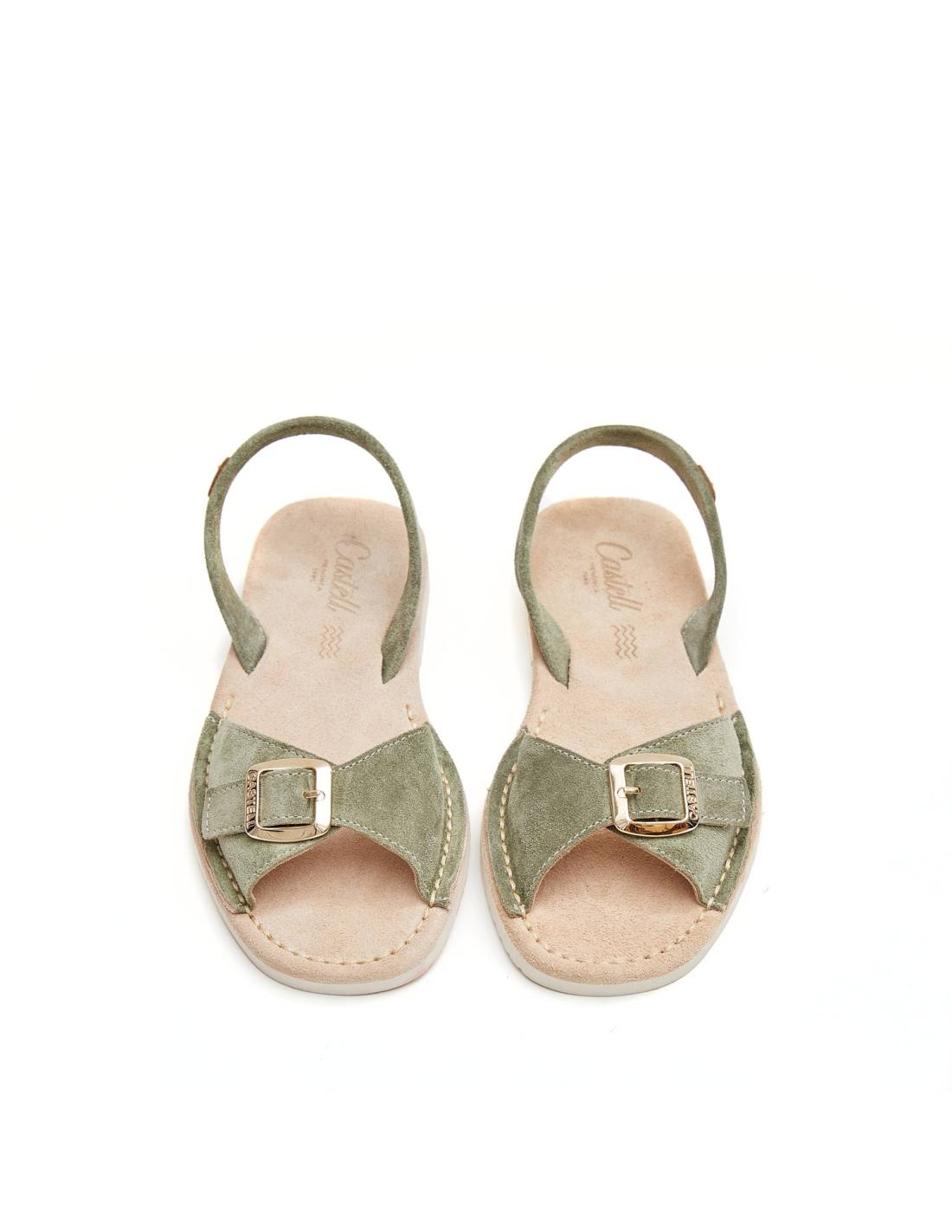 A refined take on the classic Menorcan sandal. Crafted in premium Italian suede in green, this sandal brings softness, style, and a touch of elegance. The golden buckle adds a subtle glow, elevating the design with artisanal charm. Comfort and Mediterranean essence in every step.