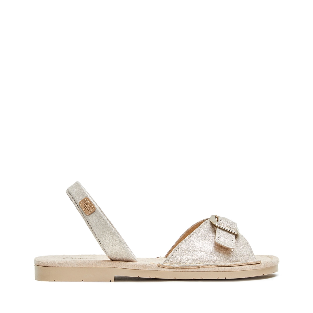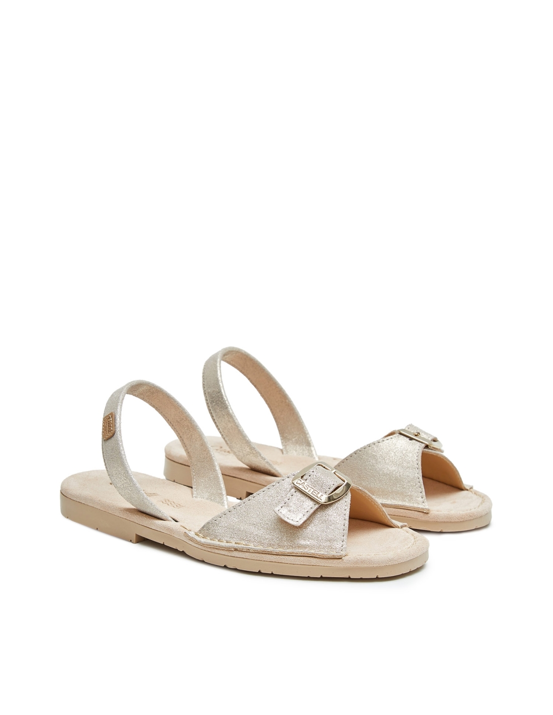 Gold abarca with buckle and padded insole, handcrafted and elegant.