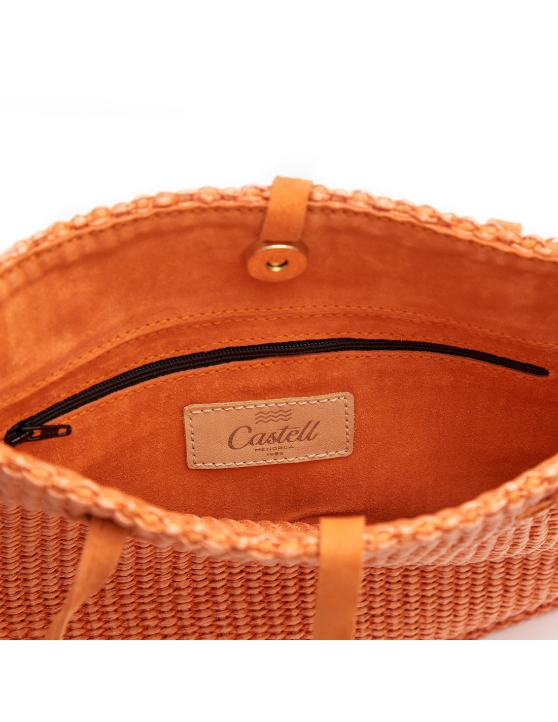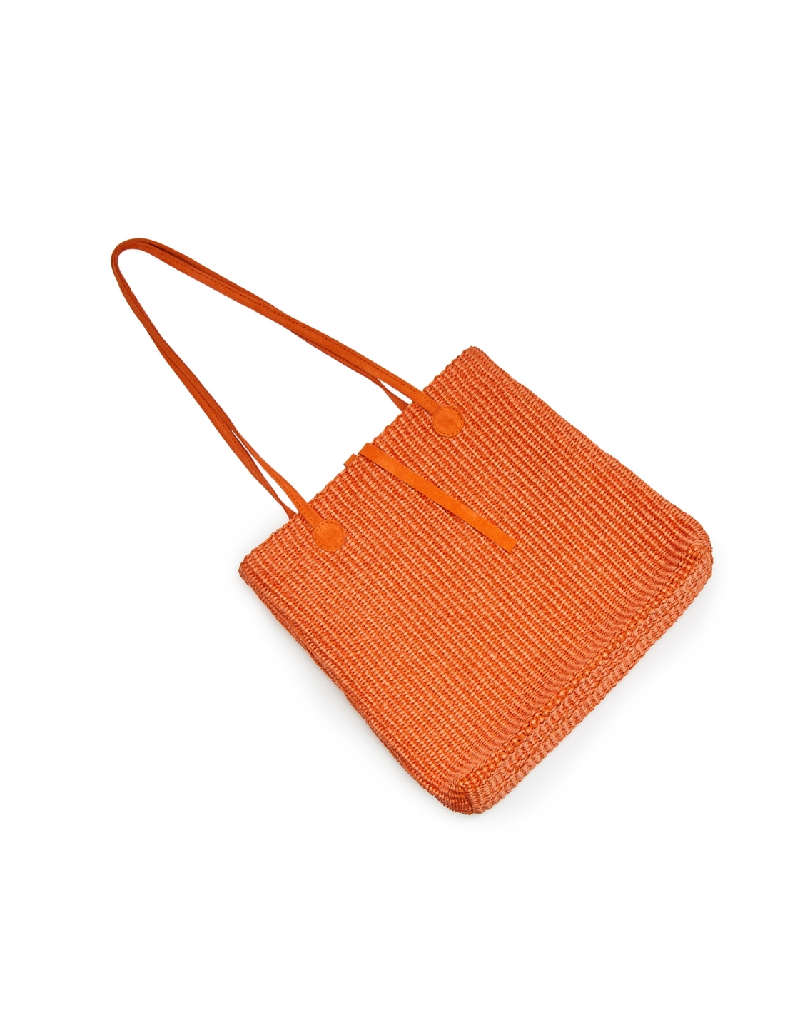 Bolso de rafia naranja artesanal con tira y cierre imán
