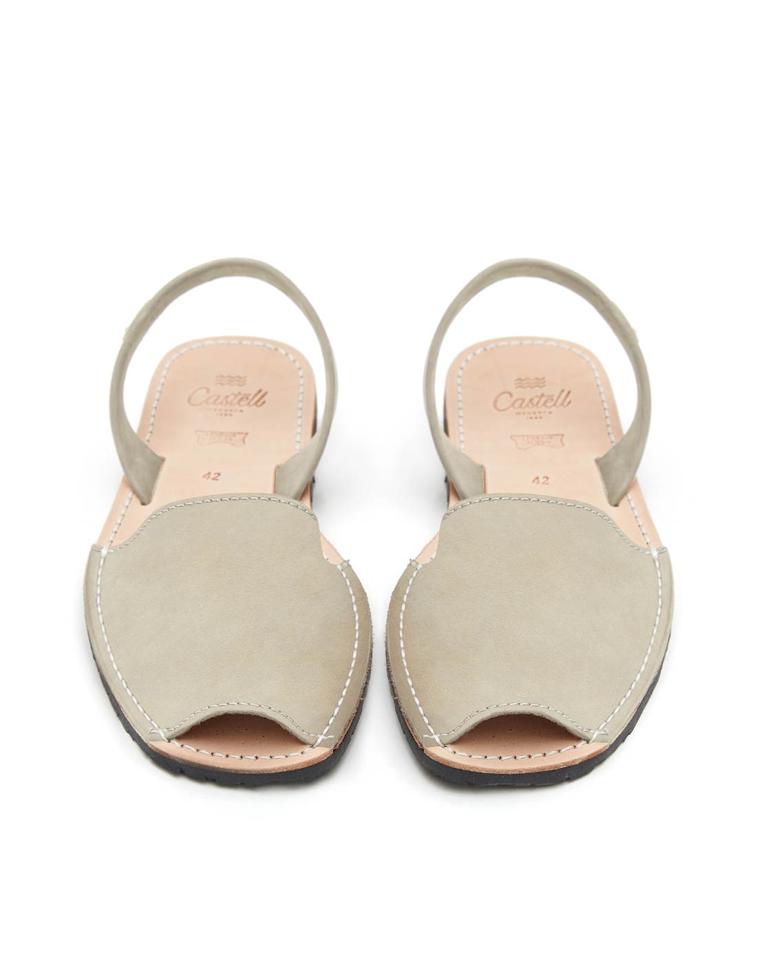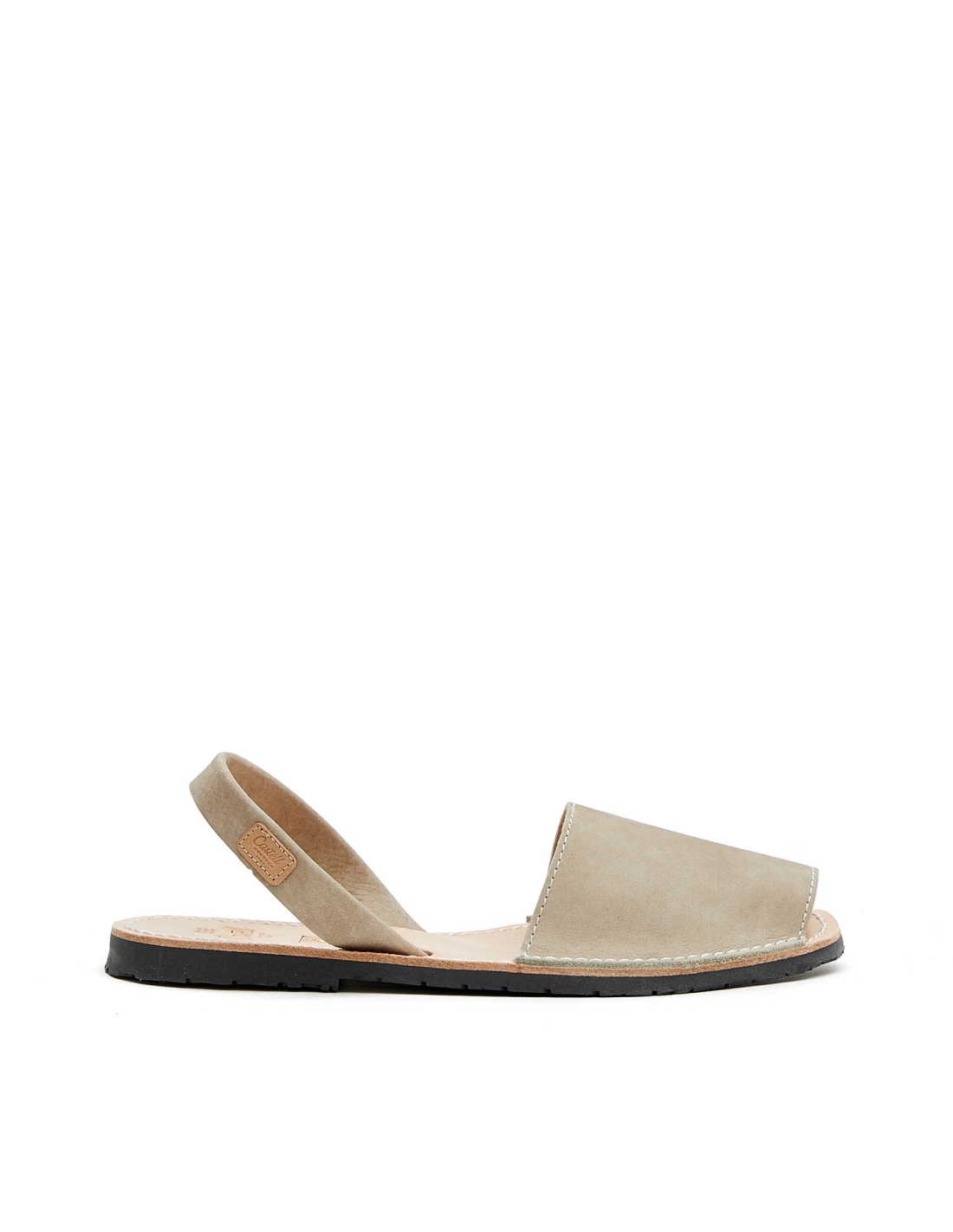 Abarcas clásicas con plantilla de cuero. Fabricación elaborada con piel de vacuno. Pala cosida a la plantilla. Piso con alza en el talón de goma negra. Altura 1,5 cm.