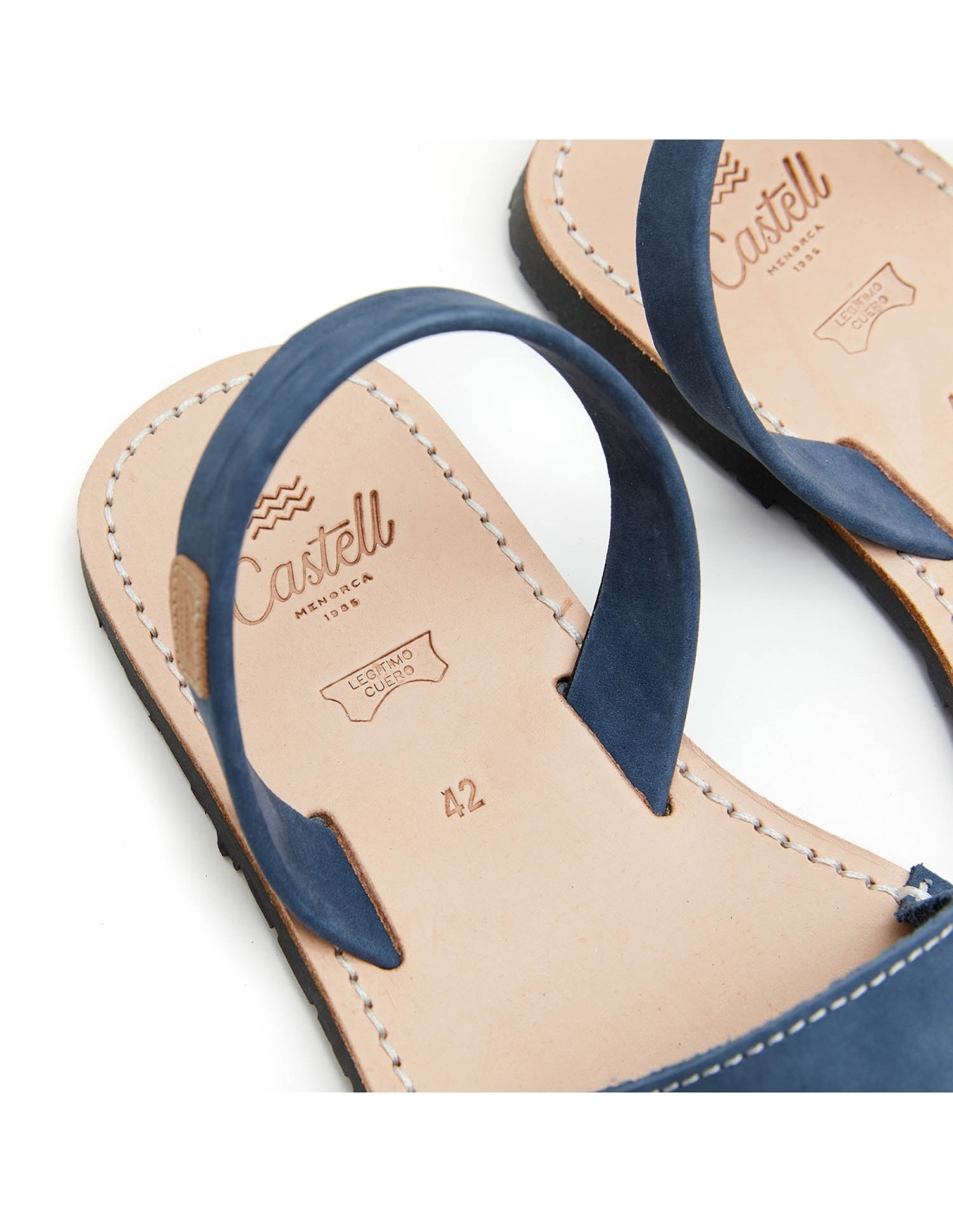 Abarcas clásicas con plantilla de cuero. Fabricación elaborada con piel de vacuno. Pala cosida a la plantilla. Piso con alza en el talón de goma negra. Altura 1,5 cm.
