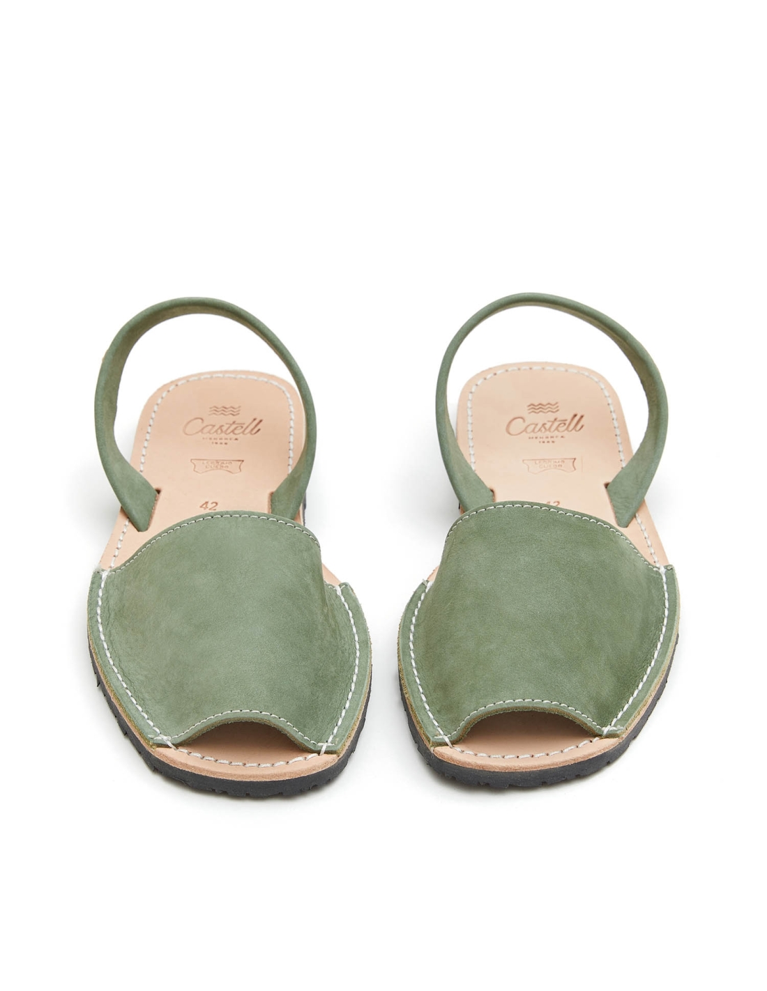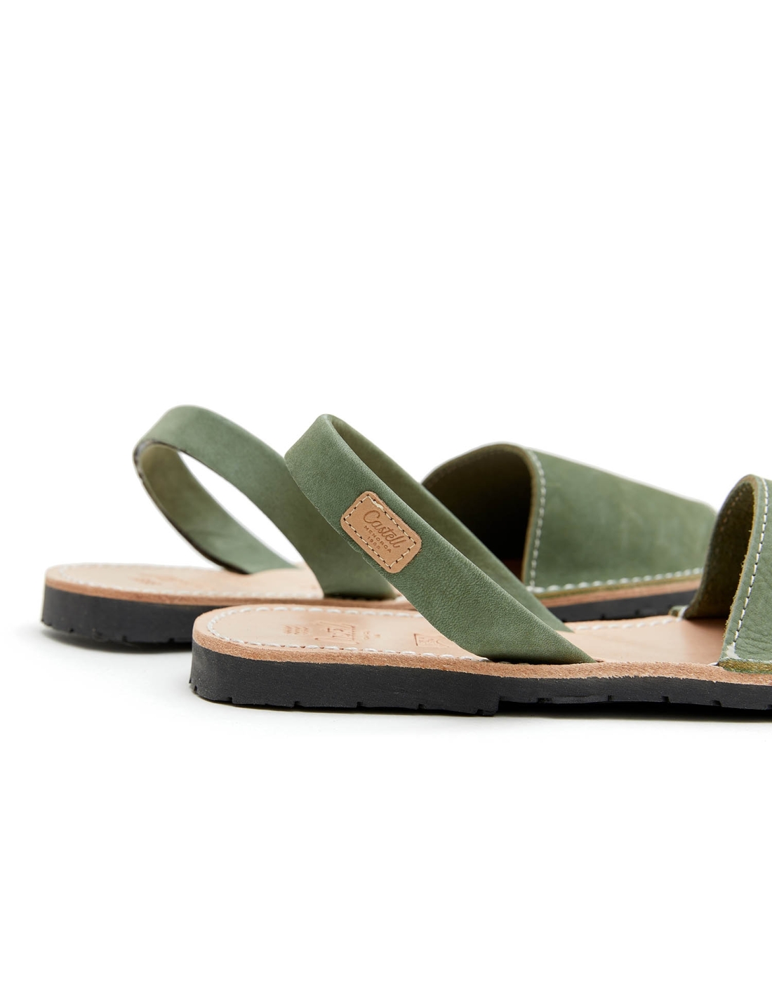 Abarcas clásicas con plantilla de cuero. Fabricación elaborada con piel de vacuno. Pala cosida a la plantilla. Piso con alza en el talón de goma negra. Altura 1,5 cm.
