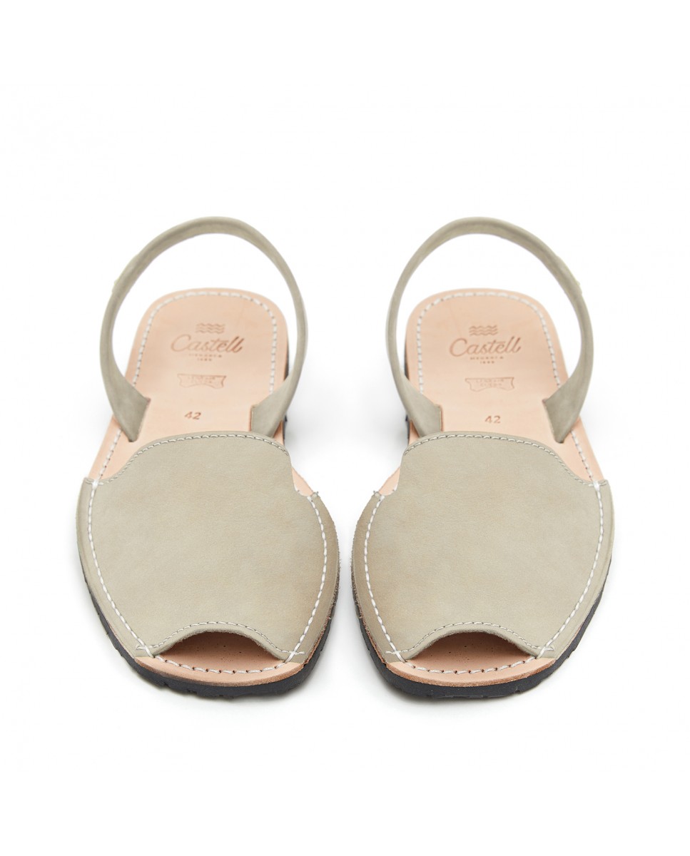 Abarcas clásicas con plantilla de cuero. Fabricación elaborada con piel de vacuno. Pala cosida a la plantilla. Piso con alza en el talón de goma negra. Altura 1,5 cm.
