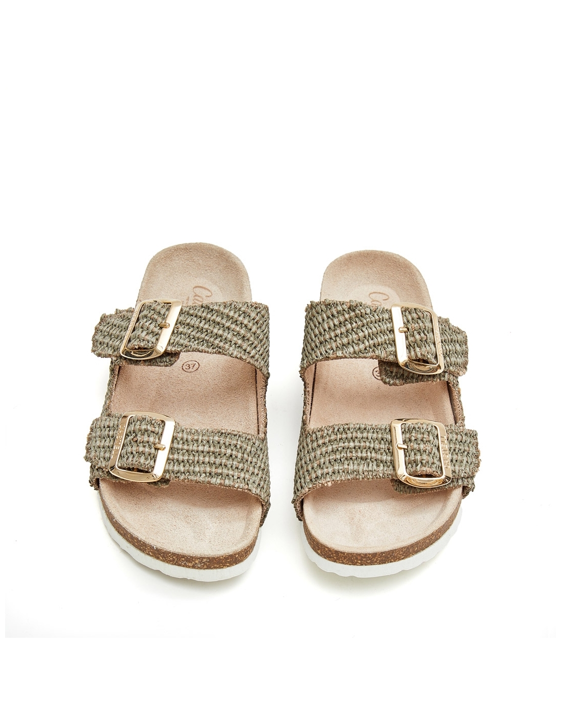 Sandalia de rafia con plantilla anatómica y hebillas ajustables