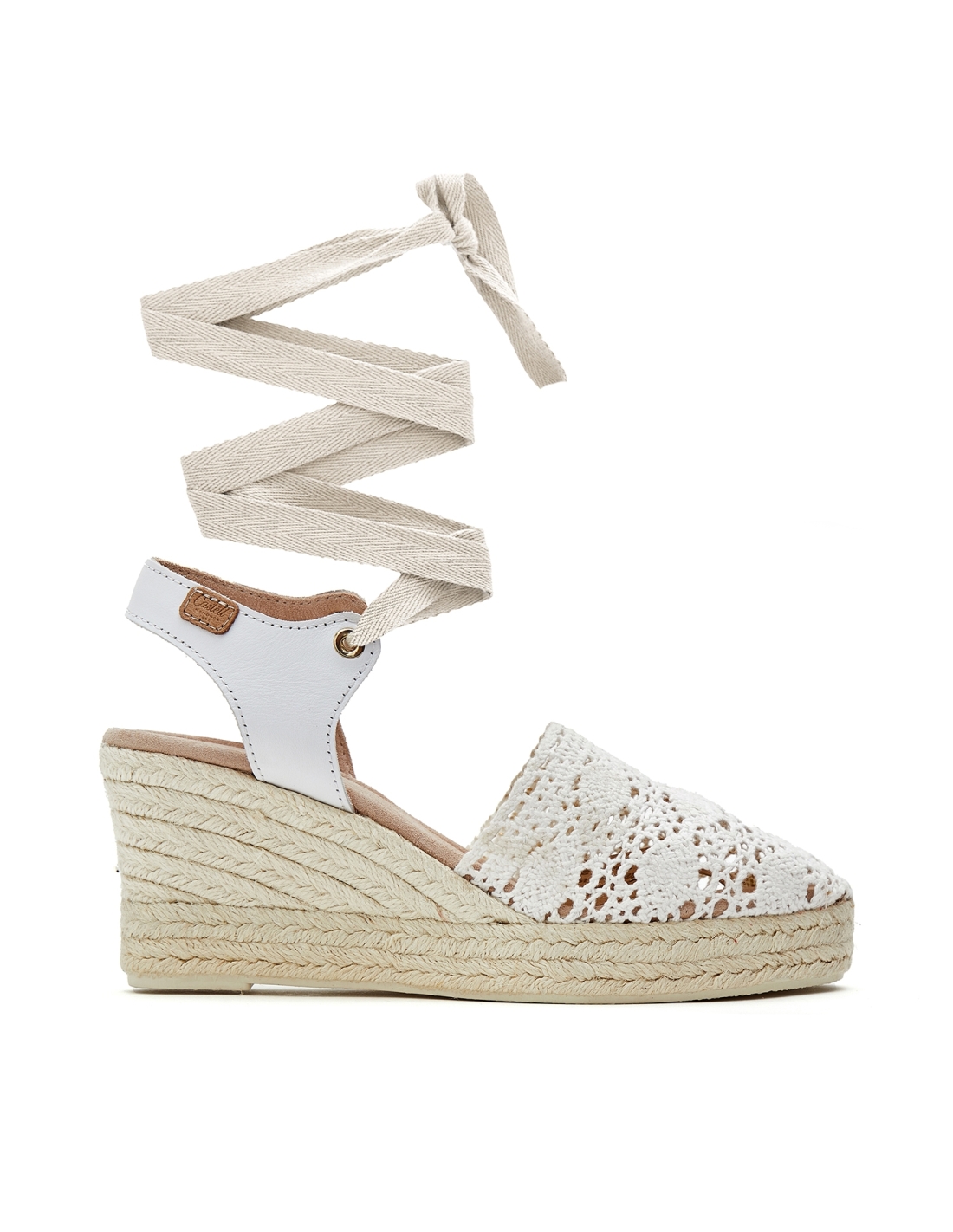La sandàlia Mari combina l'encant artesanal del ganxet amb l'alçada perfecta de la seva falca de