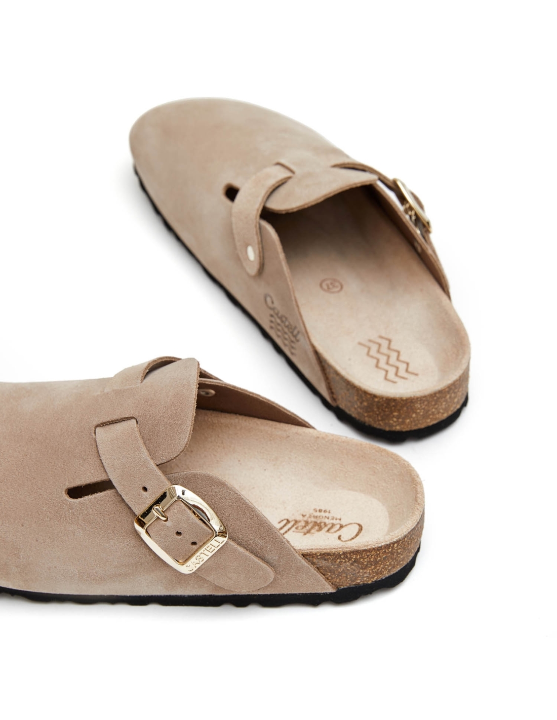 Zueco anatómico confeccionado serraje de primera calidad. Con hebilla regulable en la pala.