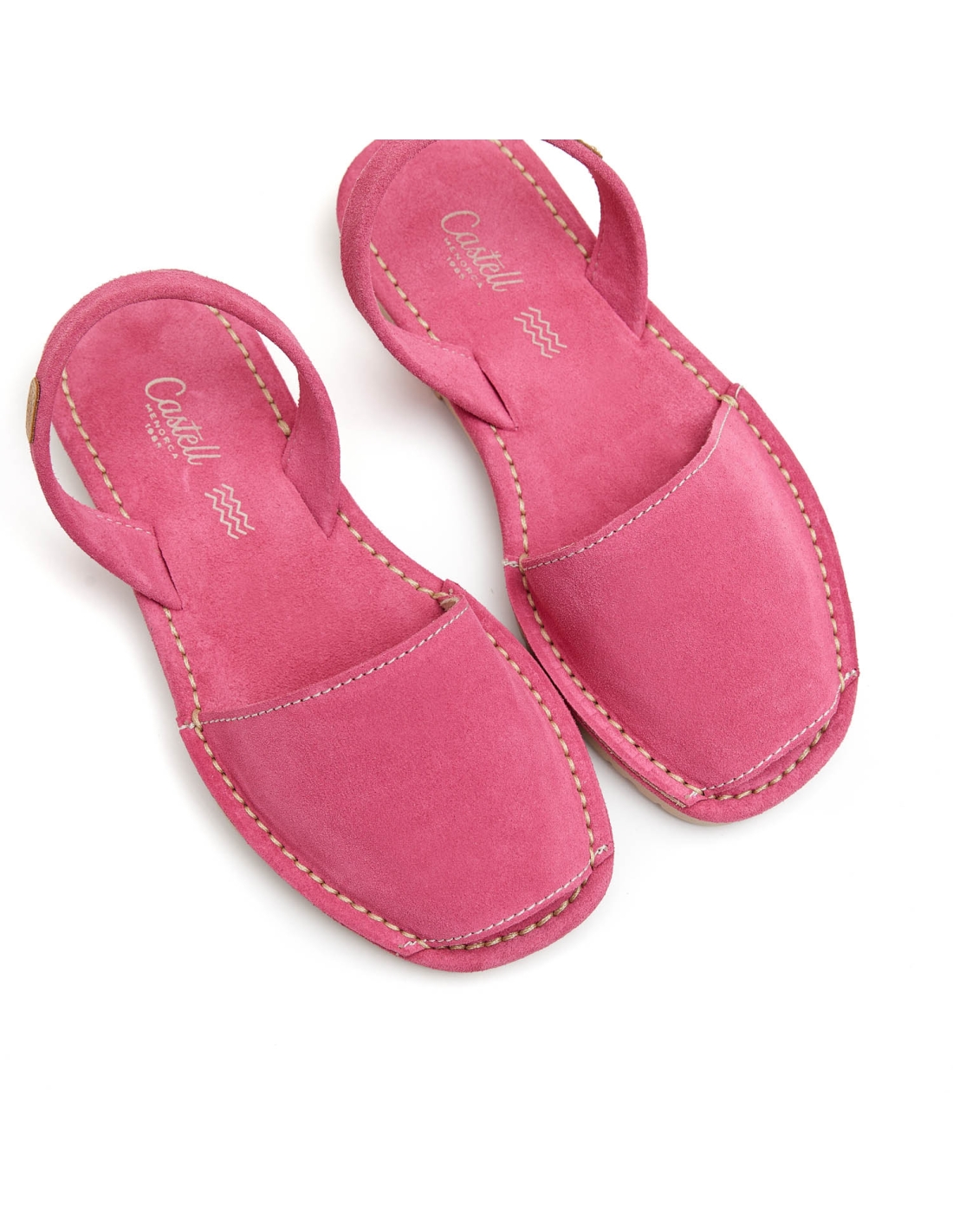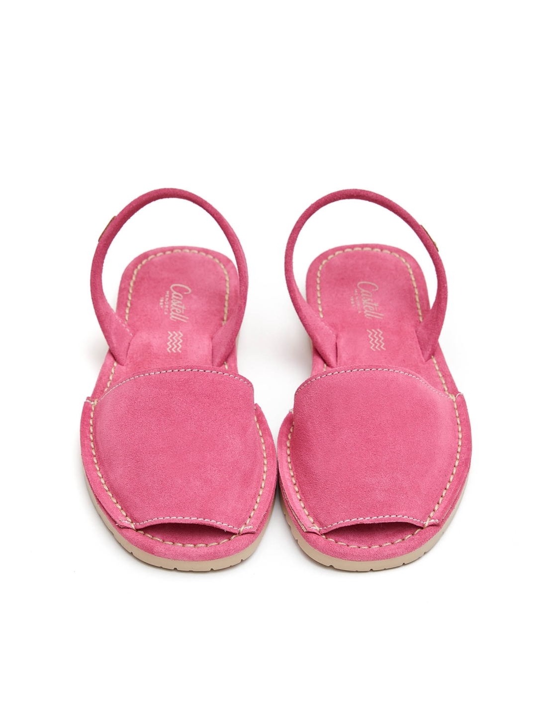Abarca de serraje italiano de 1ª calidad con plantilla al tono y pala forrada de piel cosida en la plantilla de piel de serraje acolchada, suela de caucho de color marfil con una pequeña alza, altura de 1.5 cm.