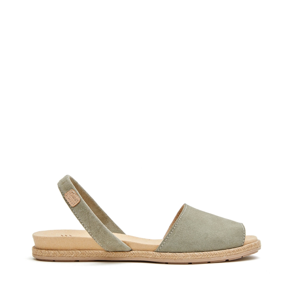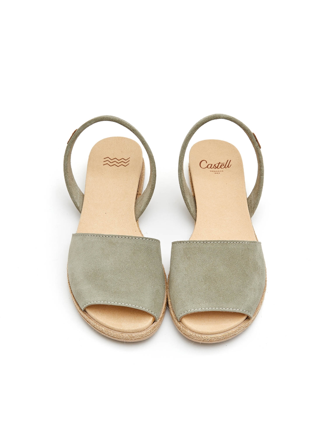 Sandalia plana de serraje italiano de 1ª calidad. Pala forrada en piel. Piso Yute. Plantilla anatómica forrada. Yute de 3 cm de altura.